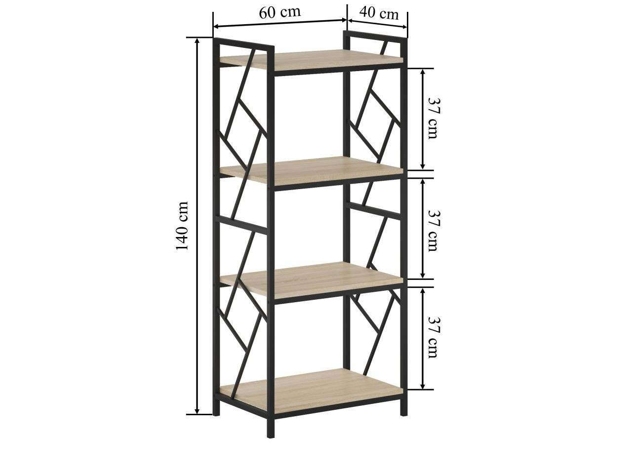 La bibliothèque LOFT 60 cm – 4 niveaux Golddeco associe la texture naturelle du chêne Sonoma à la structure métallique noire typique du style industriel.