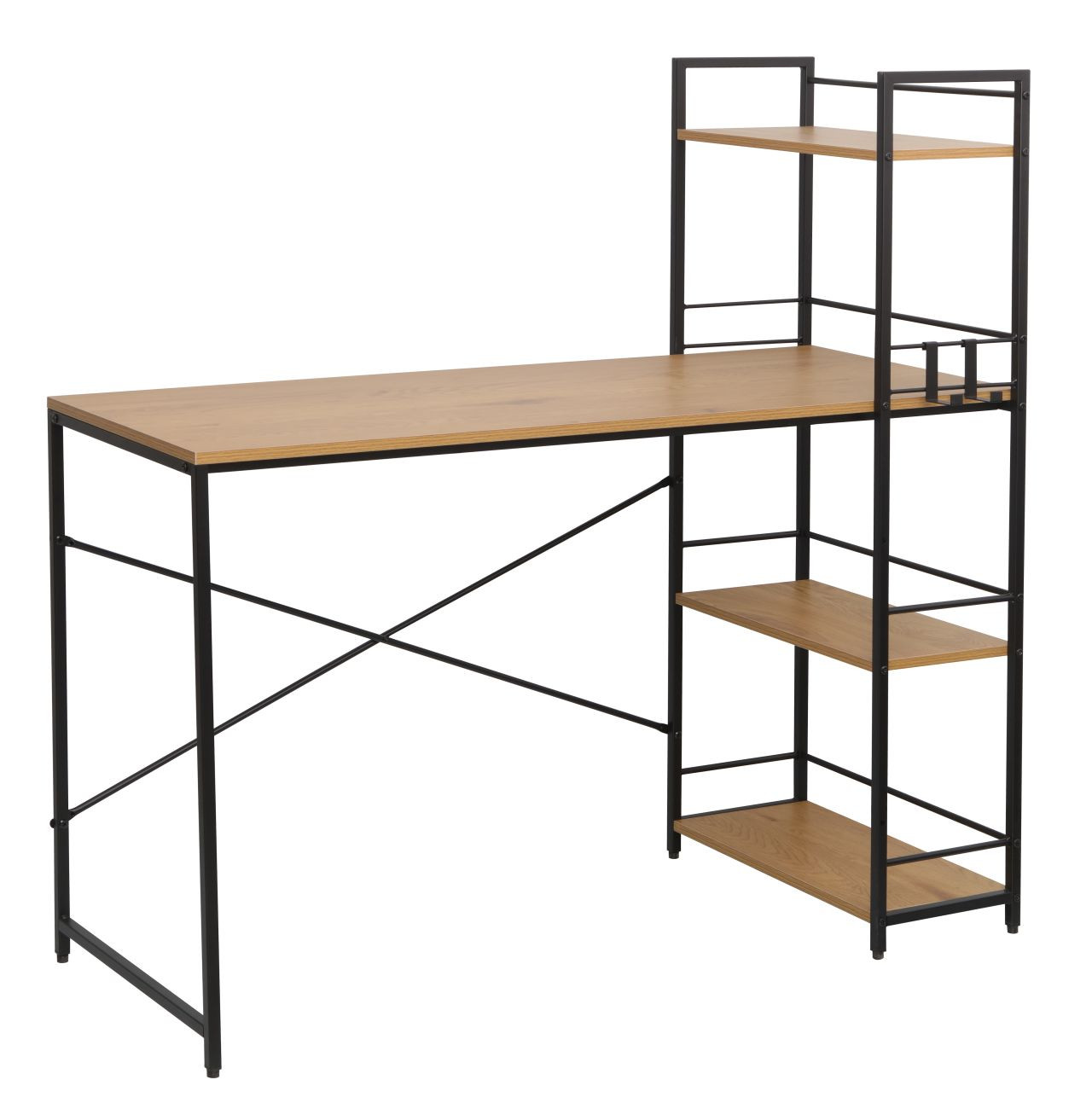 Conçu pour un usage quotidien, ce bureau offre une stabilité optimale et un espace de rangement ergonomique. La finition aspect bois clair adoucit la rigueur du métal noir pour créer un mobilier équilibré et inspirant.