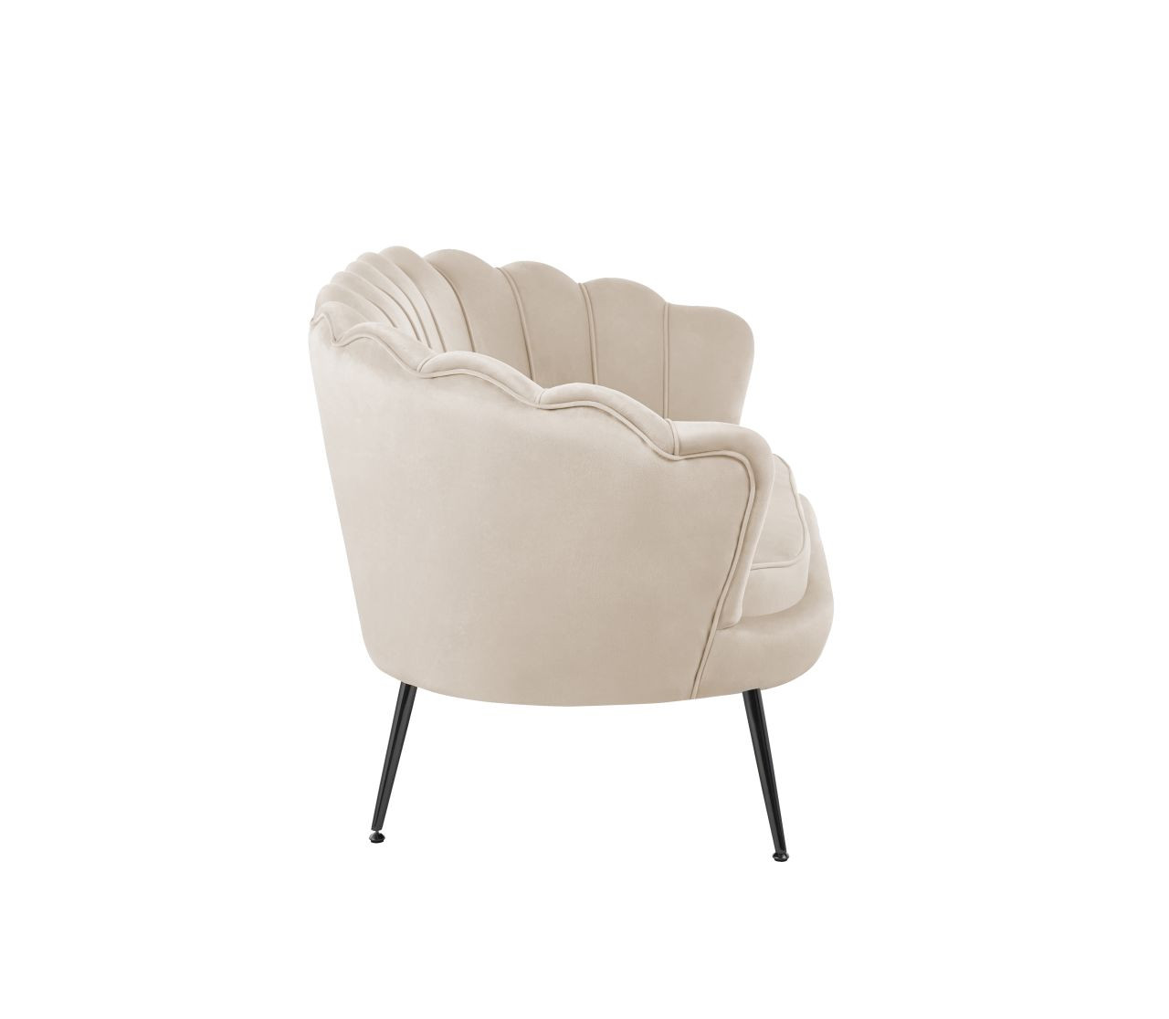 Canapé Coquillage en velours beige – Pieds noirs
