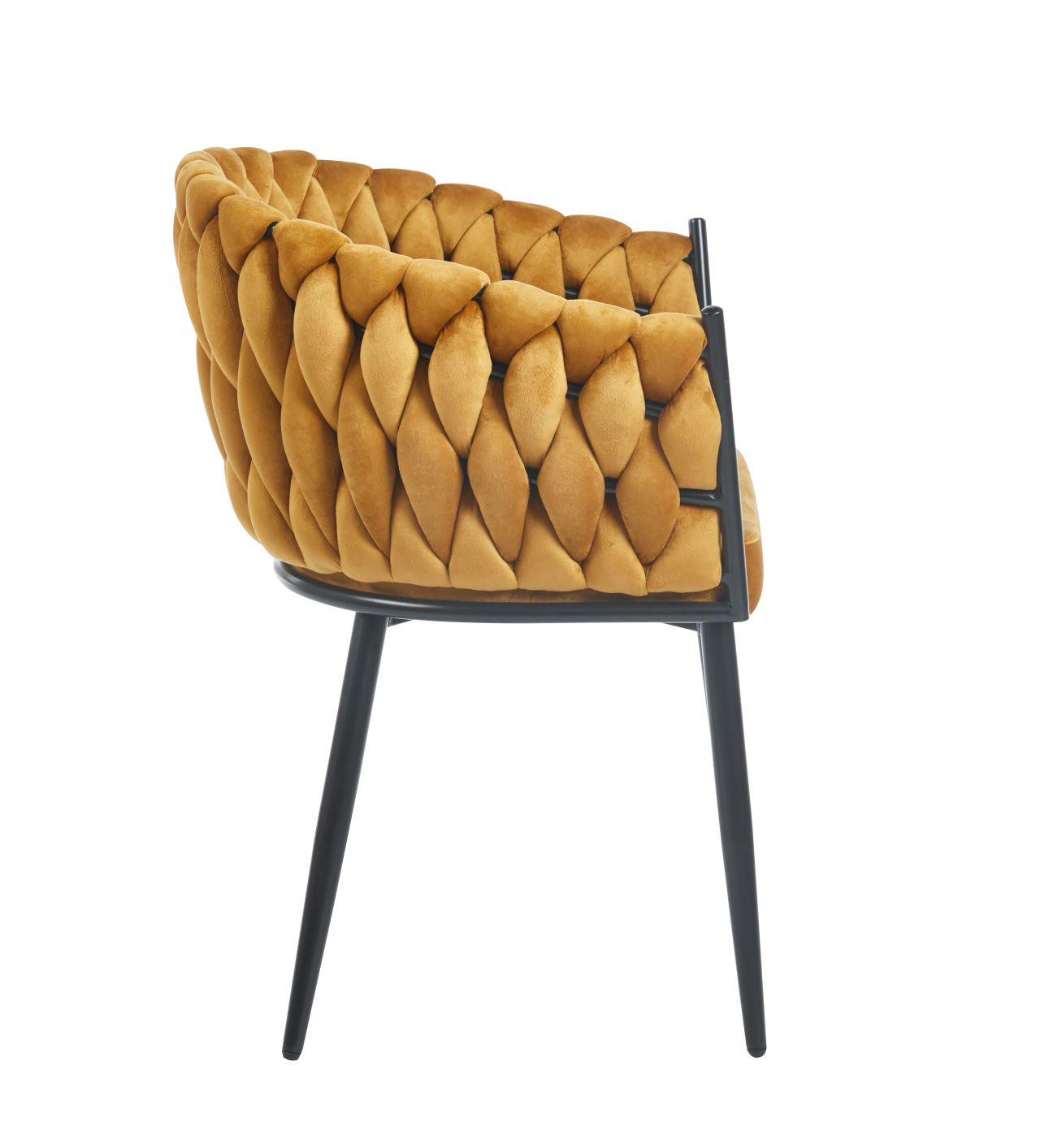 La chaise Maeva en velours curry insuffle une touche solaire et audacieuse à votre intérieur. Son dossier matelassé au relief sculptural, son assise moelleuse et ses pieds en métal noir lui confèrent un style à la fois raffiné et moderne. Élégante et confortable, elle s’intègre parfaitement dans une salle à manger, un salon ou un bureau design. Une création Golddeco où la lumière, la texture et la couleur s’unissent pour sublimer la décoration.