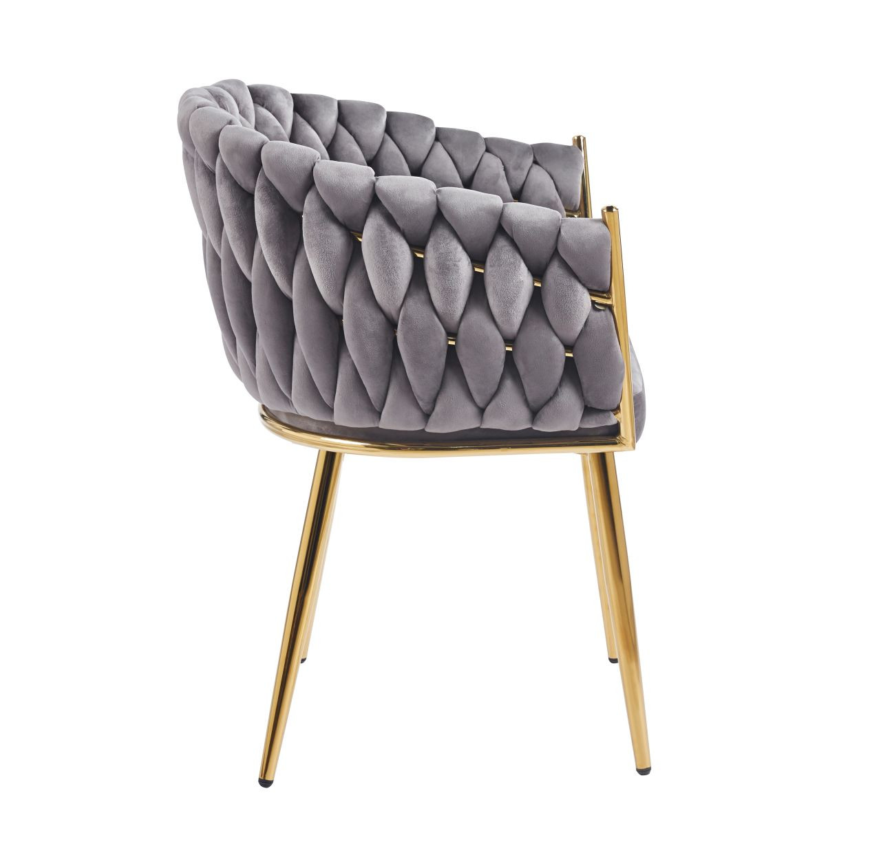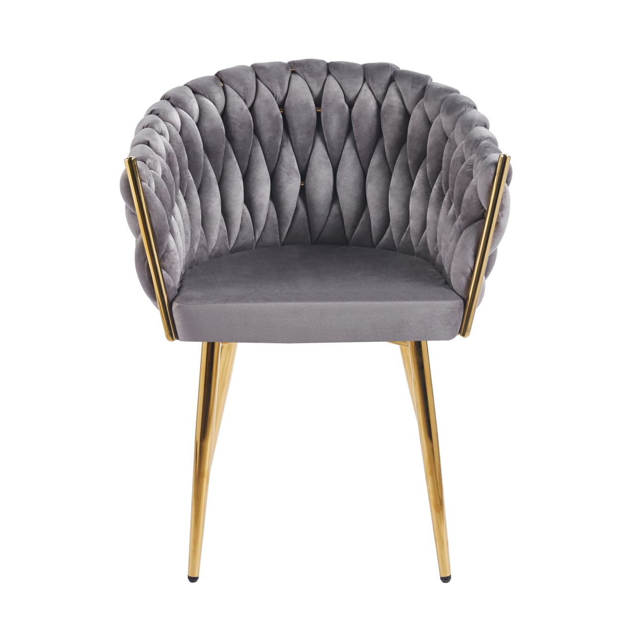 La chaise Maeva en velours gris combine la sobriété d’un ton intemporel à la brillance dorée d’un piètement chromé éclatant. Symbole d’un luxe discret, elle reflète l’art du design selon Golddeco : des lignes sculptées, une texture veloutée et une touche lumineuse qui transforme chaque pièce en un espace raffiné et apaisant.