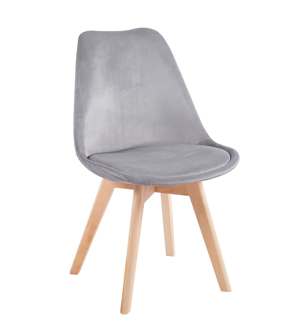 Chaise Scandi en velours gris – Harmonie entre douceur et naturel