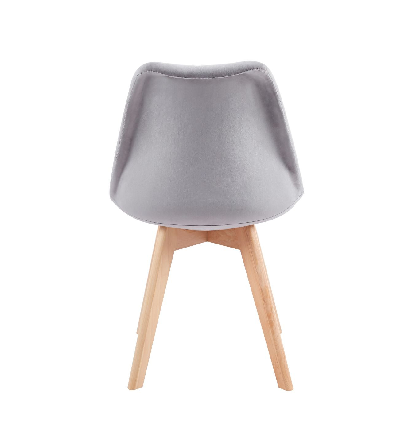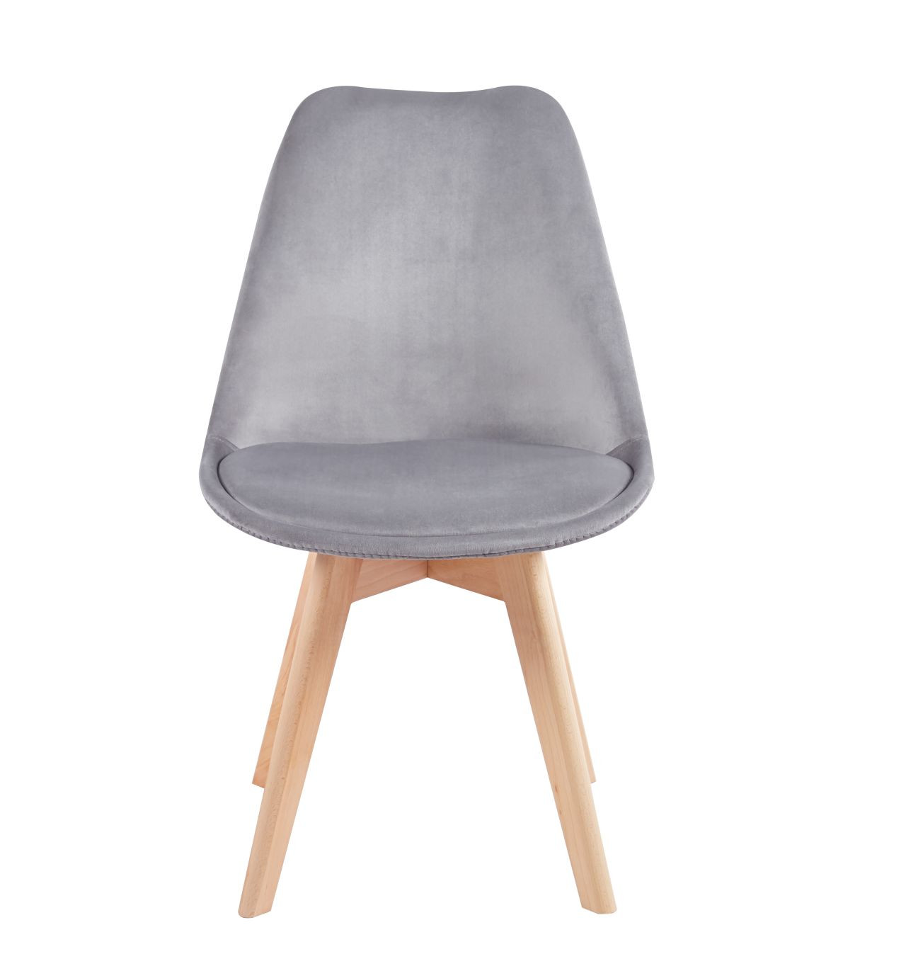 Élégante et intemporelle, la Scandi séduit par ses lignes épurées et sa forme enveloppante. Son dossier légèrement incurvé assure un maintien parfait du dos, tandis que le velours gris perle apporte une note chic et contemporaine. L’ensemble repose sur quatre pieds obliques en bois de hêtre naturel, conférant à la chaise stabilité et charme scandinave.