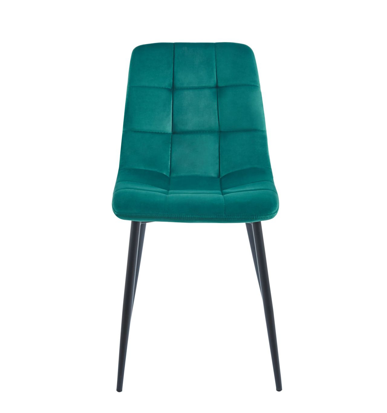La chaise Bohoo verte habille votre intérieur d’une touche audacieuse. Son revêtement velours doux et ses pieds noirs élancés offrent un contraste moderne, parfait pour une salle à manger design et lumineuse.