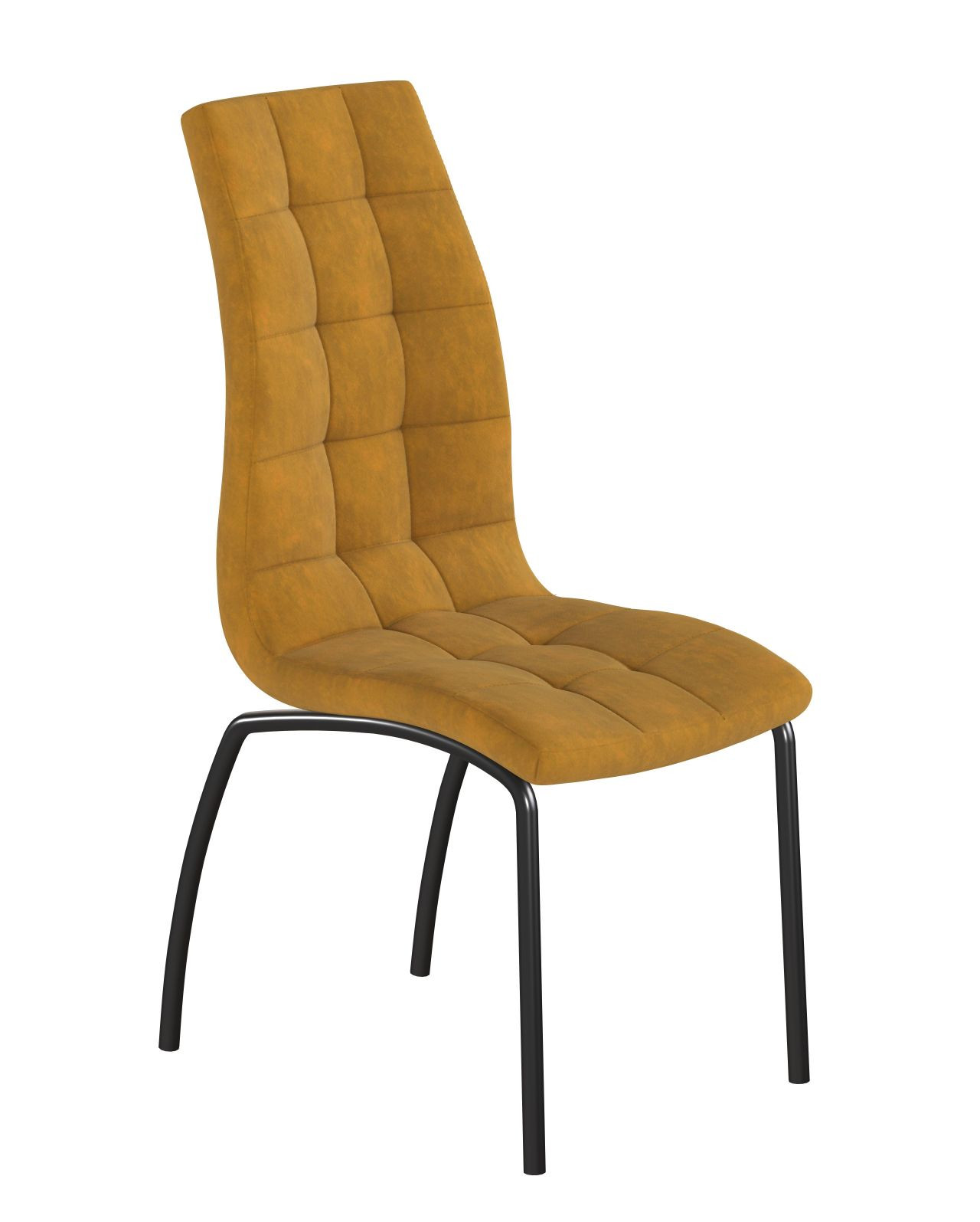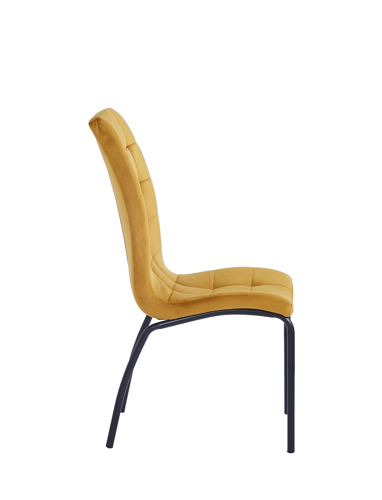 Avec son dossier haut matelassé et son revêtement en velours curry aux reflets dorés, la chaise Joshua allie élégance et confort. Sa structure en métal noir thermolaqué lui confère stabilité et modernité, tandis que son assise ergonomique épouse parfaitement la forme du dos.