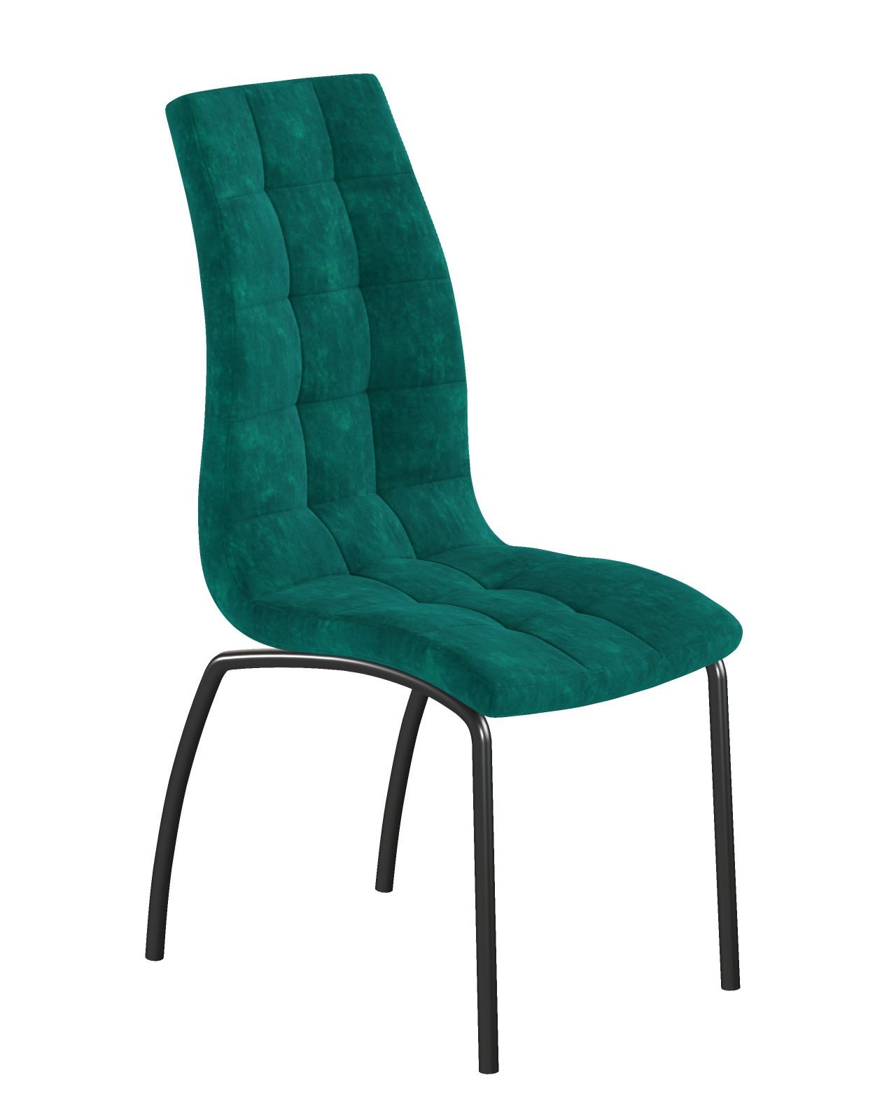 La chaise Joshua se distingue par sa silhouette fluide et son dossier haut matelassé offrant un confort d’assise exceptionnel. Son revêtement en velours vert profond confère une touche de raffinement, tandis que sa structure en métal noir thermolaqué garantit robustesse et stabilité au quotidien.
