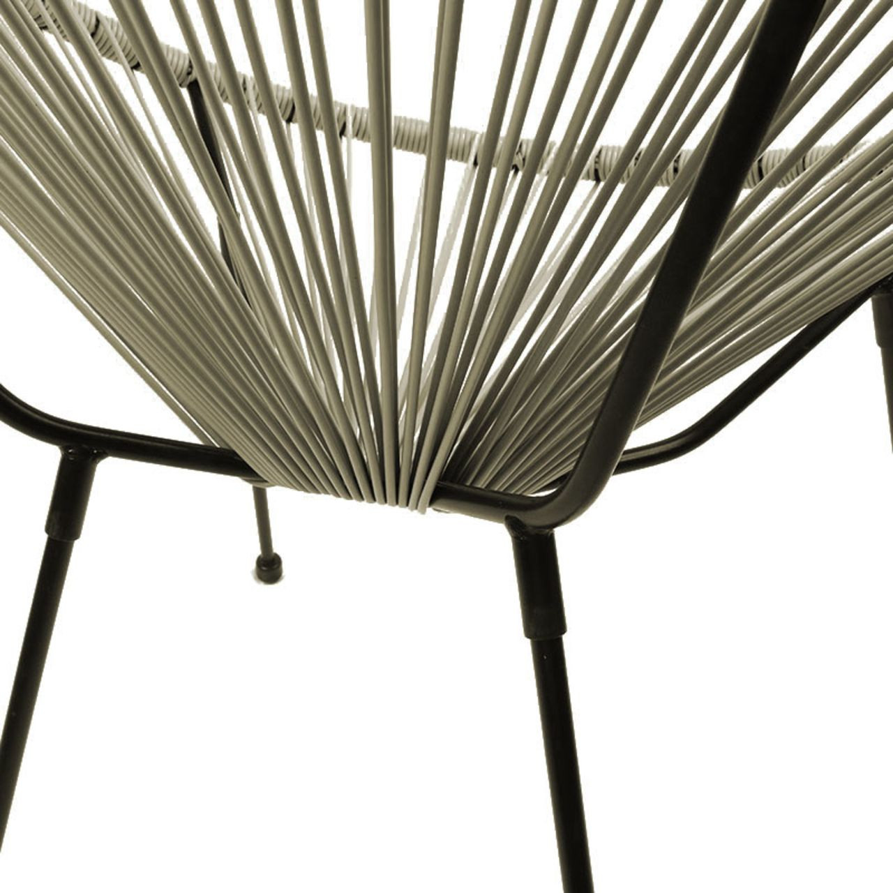 Fauteuil lounge en technorattan beige avec structure métallique noire. Style aérien, confortable et chaleureux, parfait pour un intérieur relaxant.