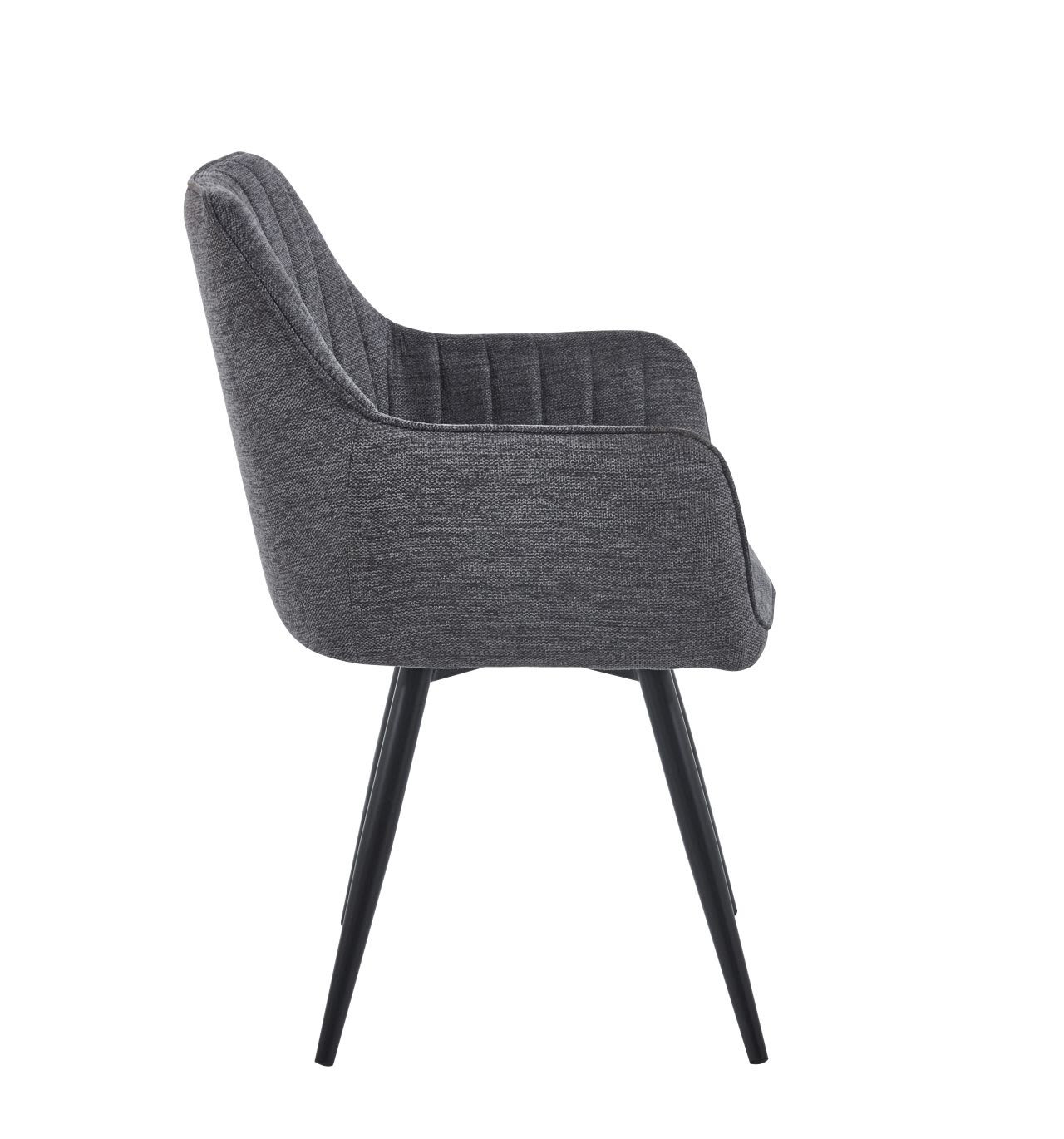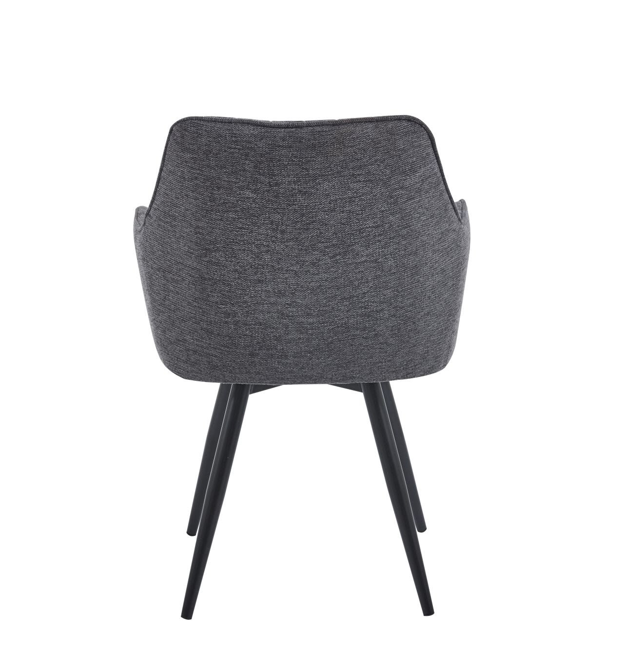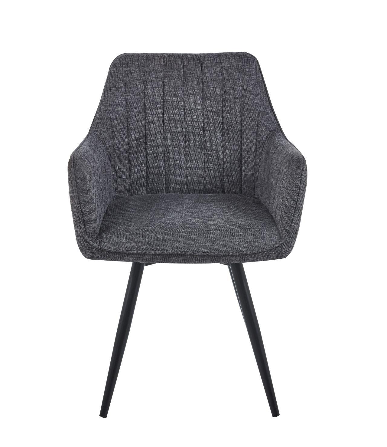 Fauteuil Sassari pivotant à 180° avec retour automatique. Tissu gris foncé structuré, pieds métal noir. Design professionnel & confort haut de gamme.