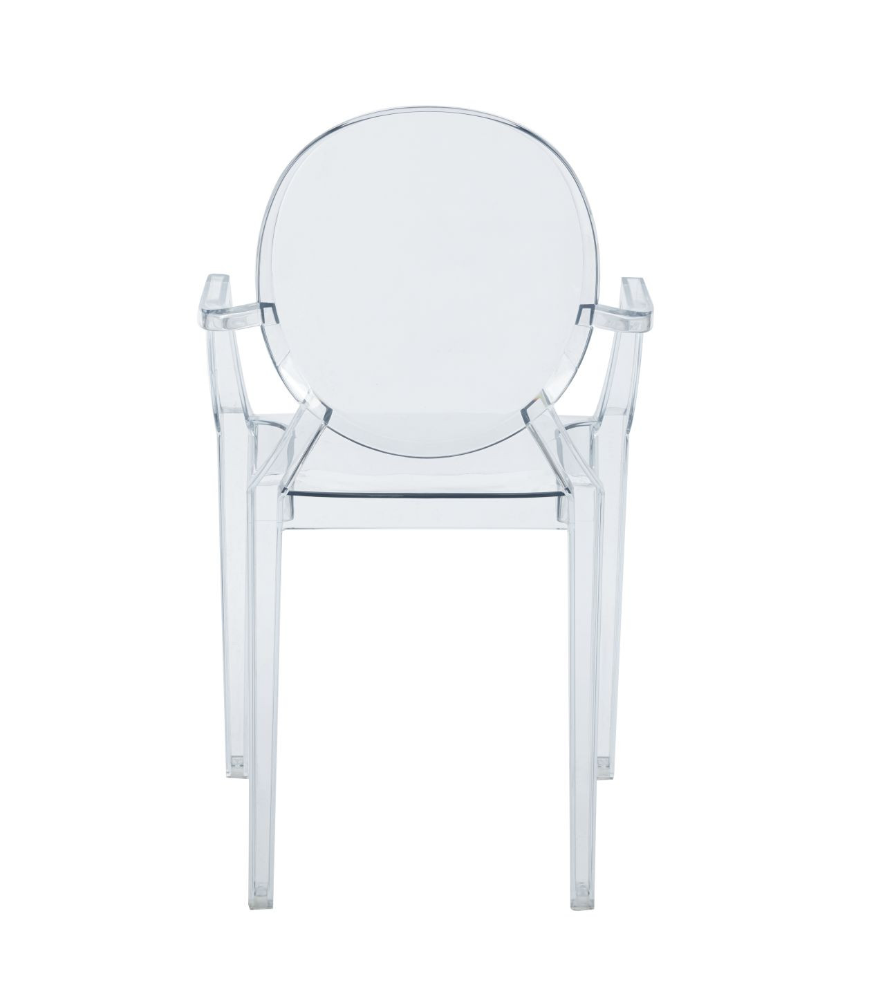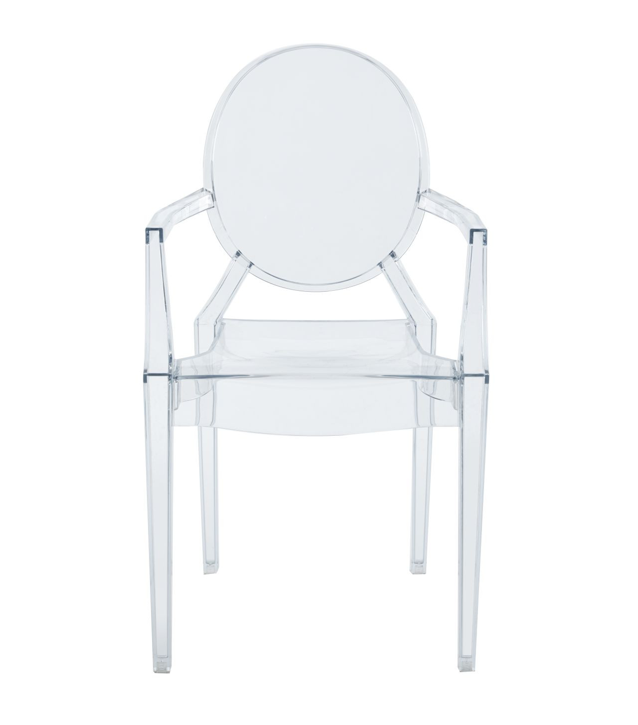 Chaise transparente avec accoudoirs en polycarbonate ultra résistant. Parfaite pour un intérieur moderne, chic et minimaliste.