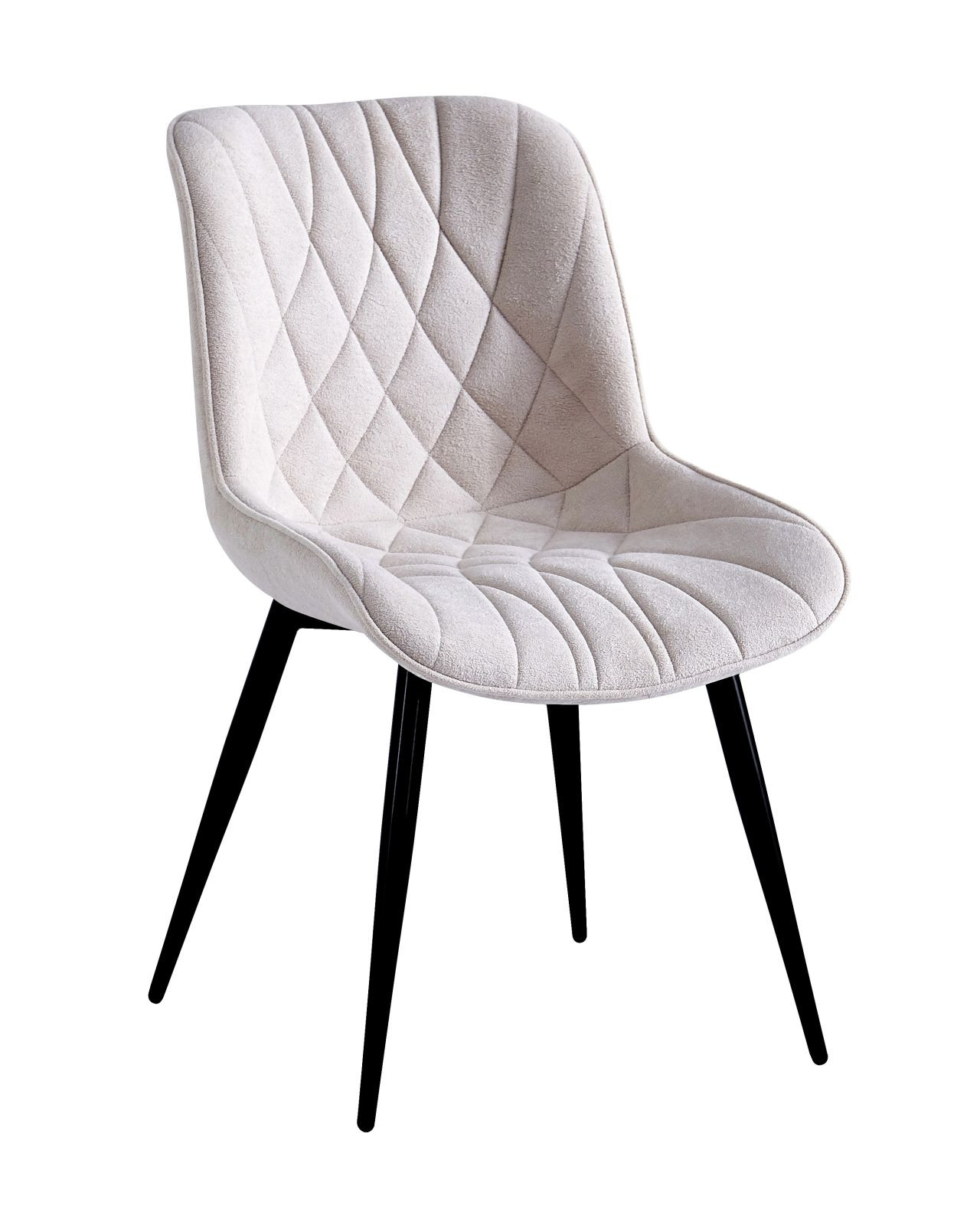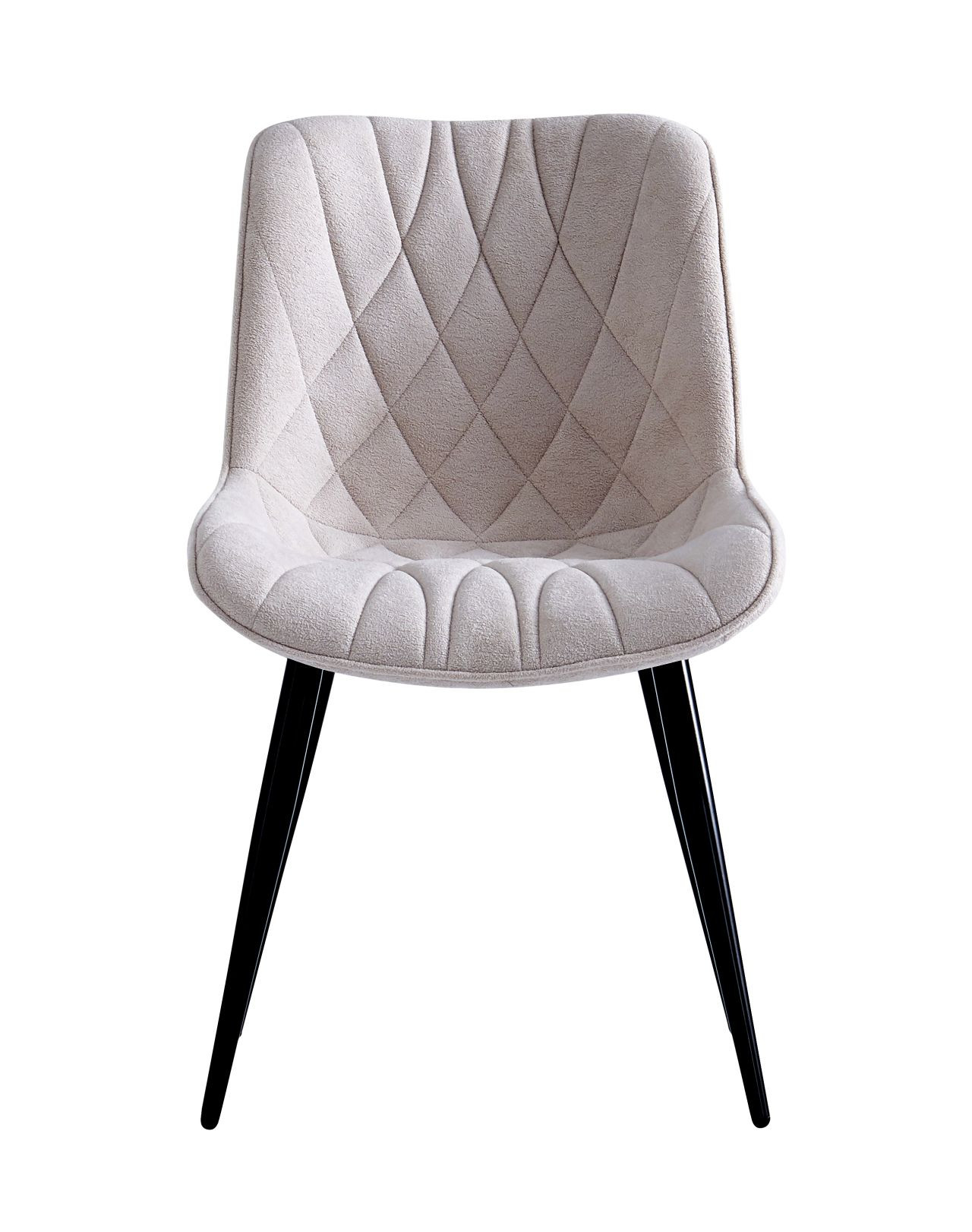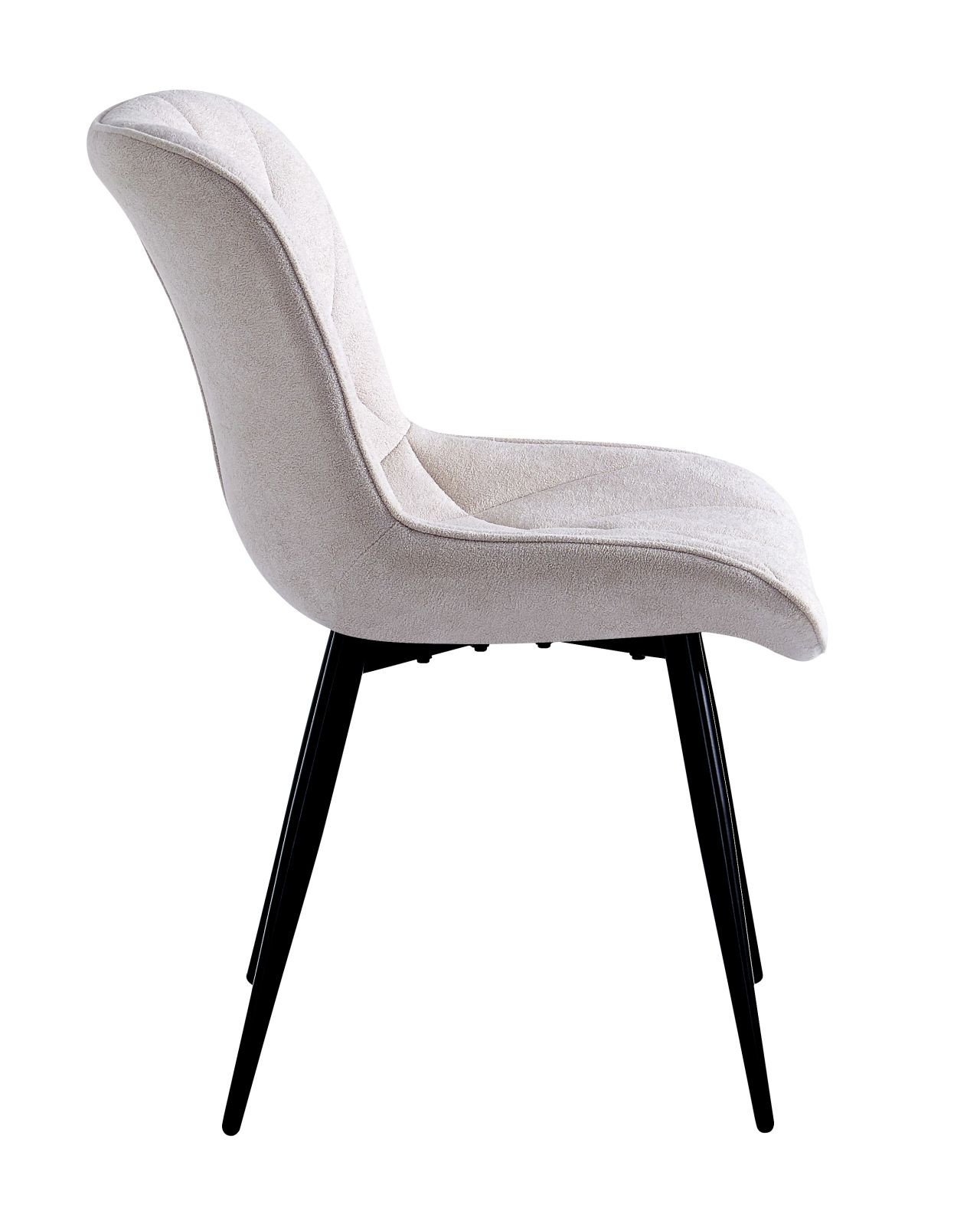 Chaise Anna en tissu beige avec assise matelassée et pieds en métal noir. Une touche contemporaine et chaleureuse pour votre intérieur.