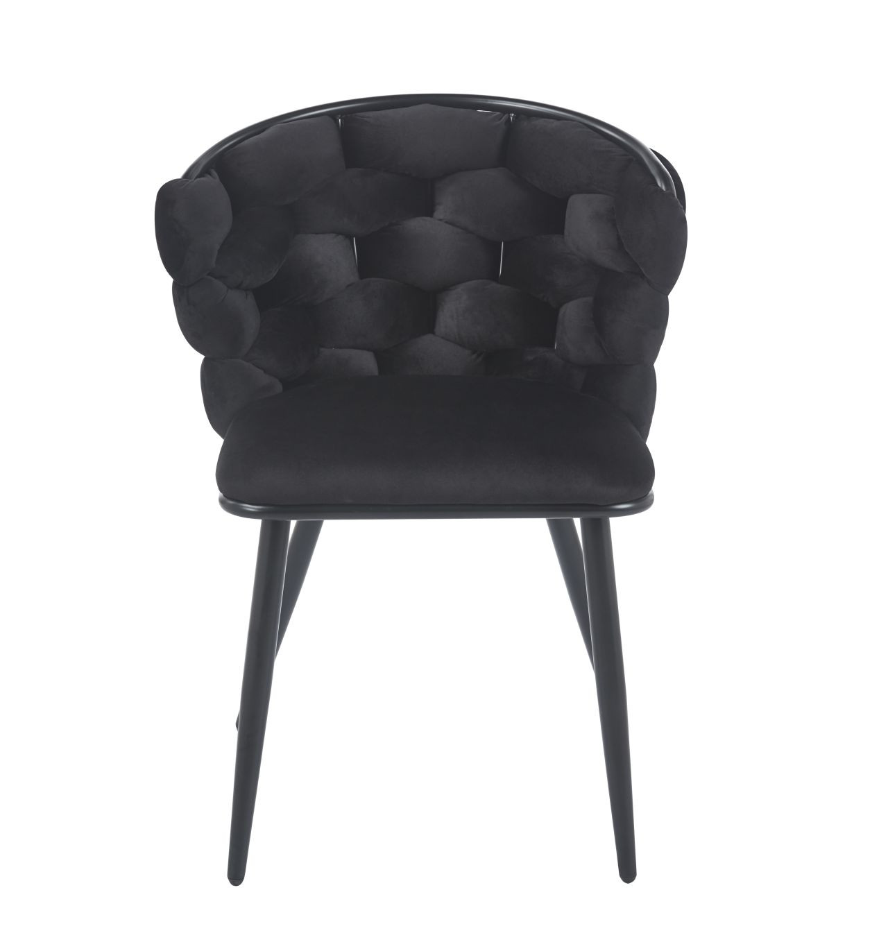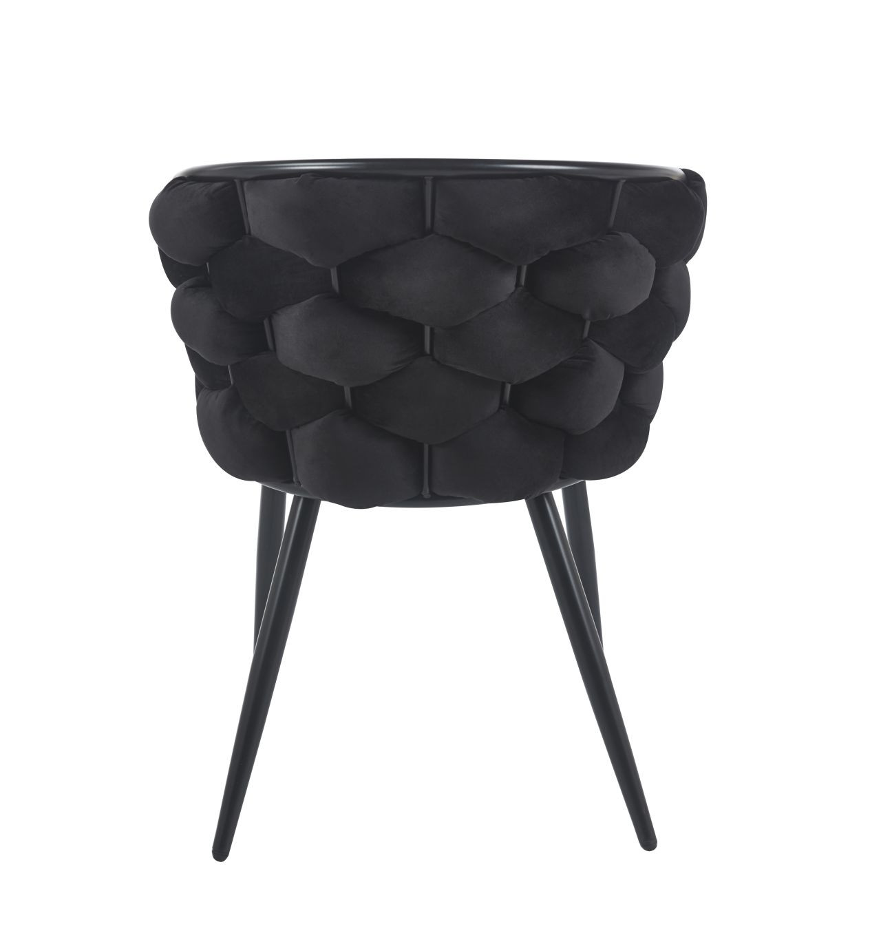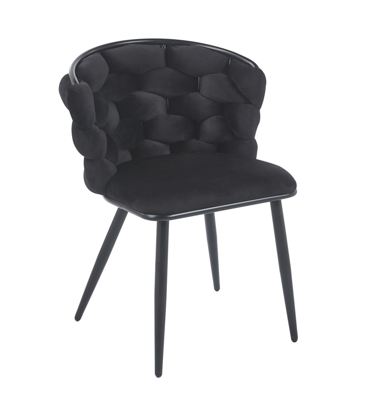 Chaise Azzura en velours noir avec dossier sculpté alvéolé. Look luxueux, assise moelleuse et structure noire élégante. Chic et confortable.