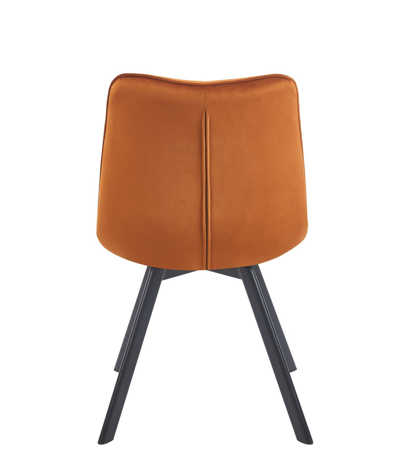 Chaise Noa en velours cannelle avec pieds noirs. Rotation 180° avec retour automatique. Confort moelleux et style chaleureux pour votre intérieur.