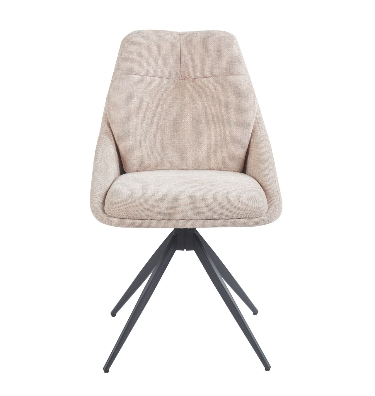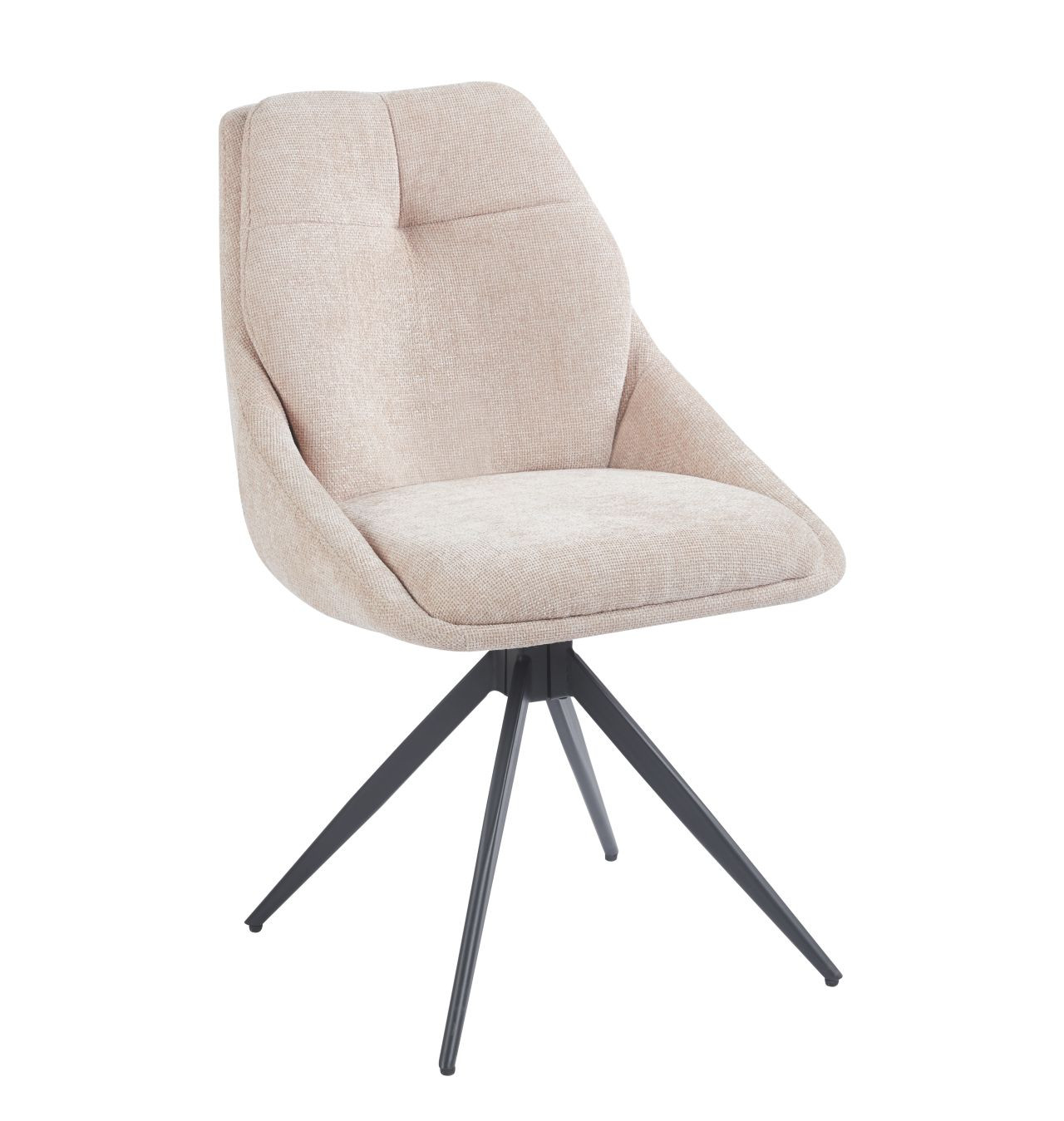 Le fauteuil SALLY en tissu lin beige séduit par son design moderne et son assise pivotante à 360°. Confortable et élégant pour salle à manger ou bureau.