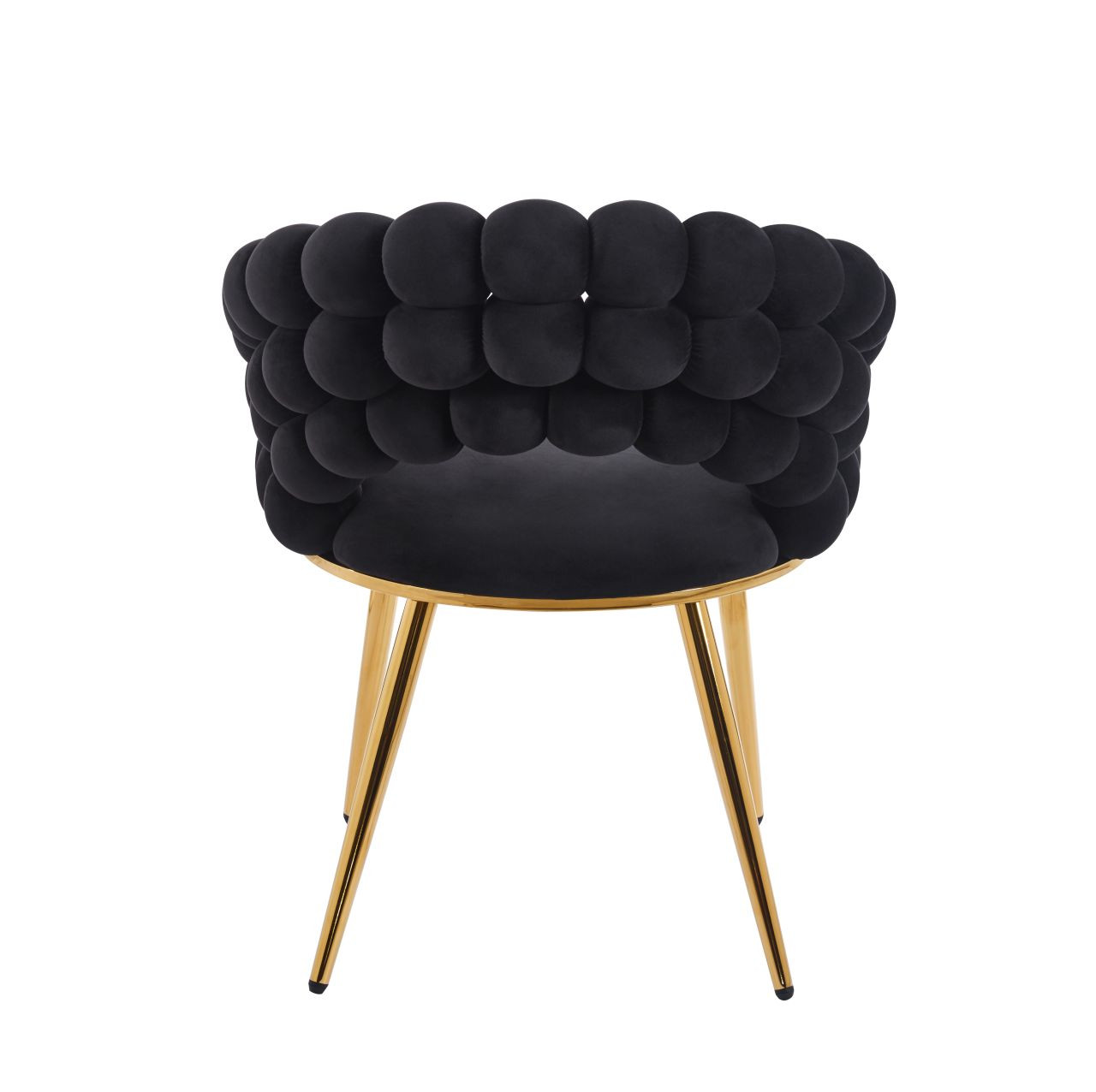Chaise originale en velours noir avec dossier capitonné en bulles et pieds dorés chromés. Un style audacieux et raffiné signé Golddeco.