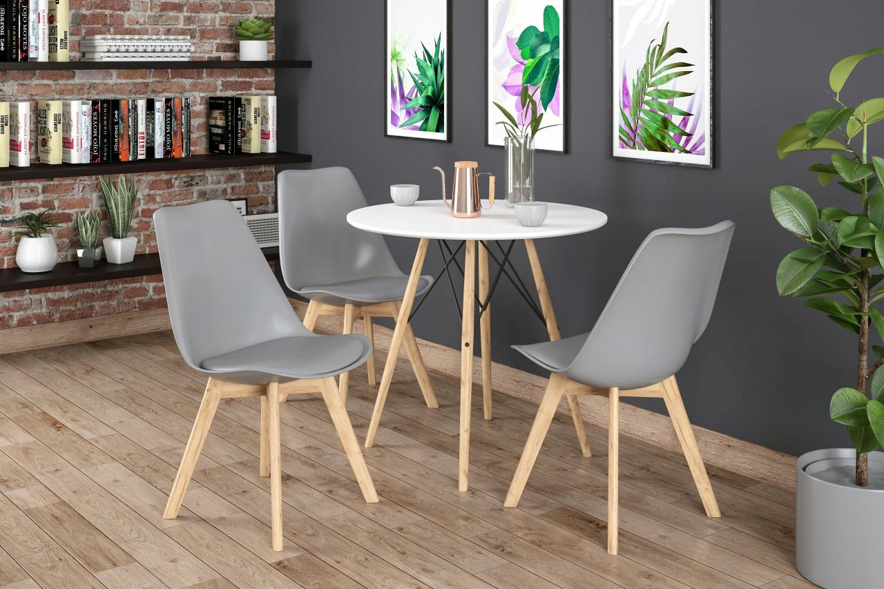 Associez cette chaise scandinave grise à une table en aspect chêne clair ou à un décor blanc et beige pour créer une ambiance apaisante et lumineuse, typique du design nordique.