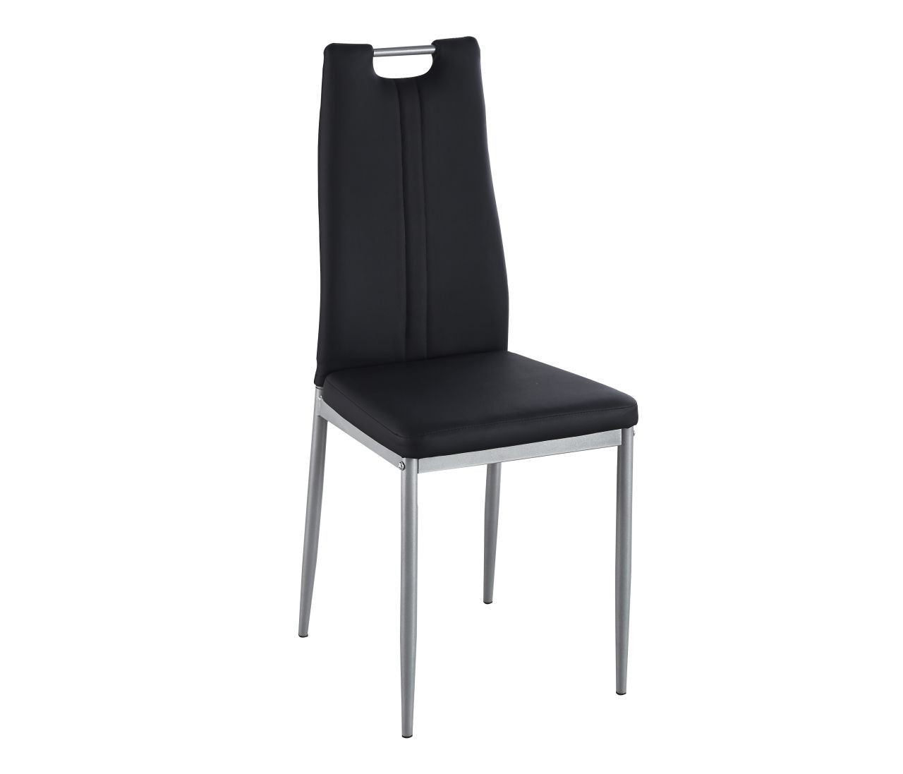 La chaise SANDRO noire associe un style sobre à un confort remarquable. Sa poignée intégrée facilite le déplacement, tandis que sa structure en acier thermolaqué lui confère une solidité durable.