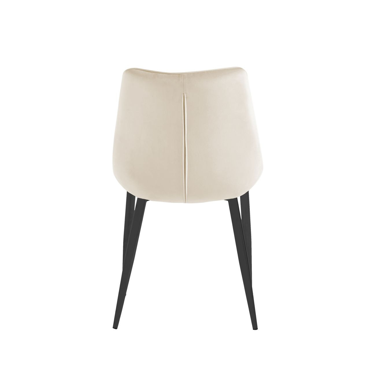 La chaise Victor se distingue par son design équilibré et sa teinte beige lumineuse. Le contraste entre son revêtement en velours doux et ses pieds noirs en métal thermolaqué crée une esthétique chic et contemporaine.