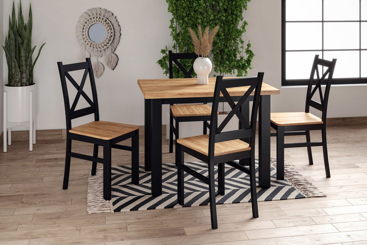 Chaise en bois noir avec assise aspect chêne doré – L’alliance du charme et de la solidité Golddeco