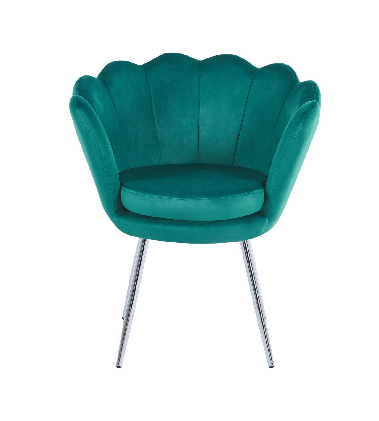 Chaise Coquillage en velours vert émeraude – Pieds chromés