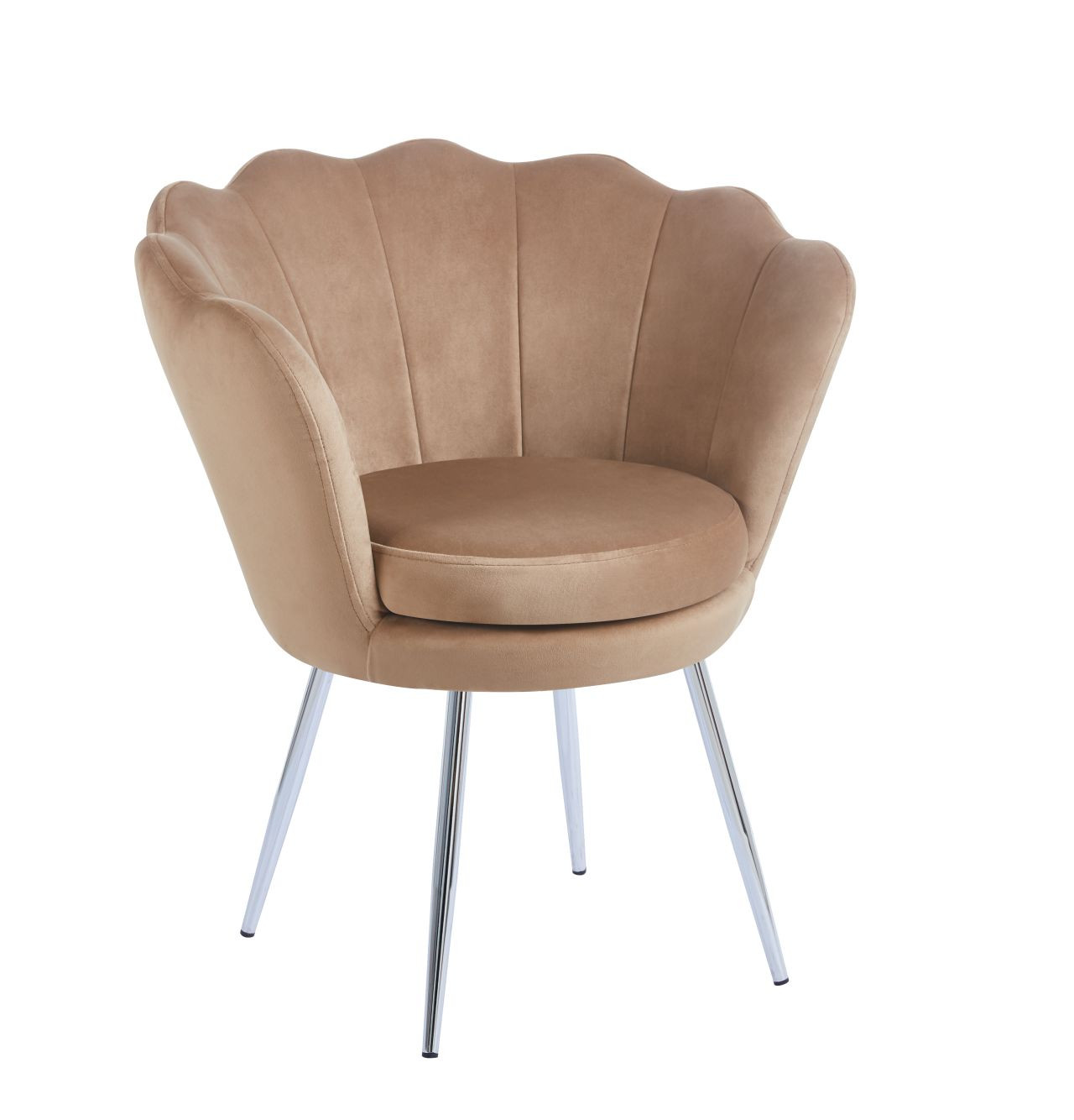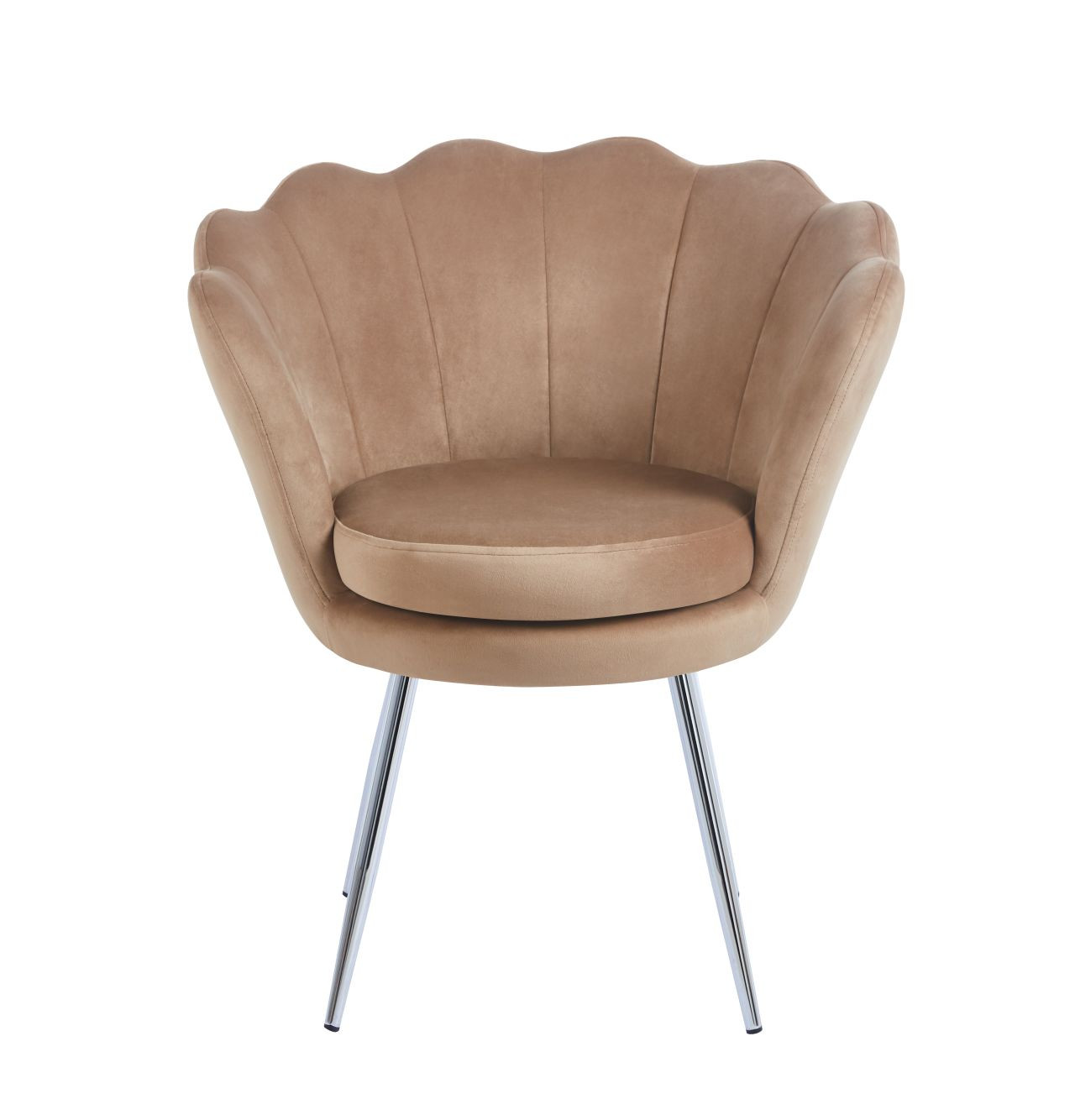 Chaise Coquillage en velours cappuccino – Pieds chromés