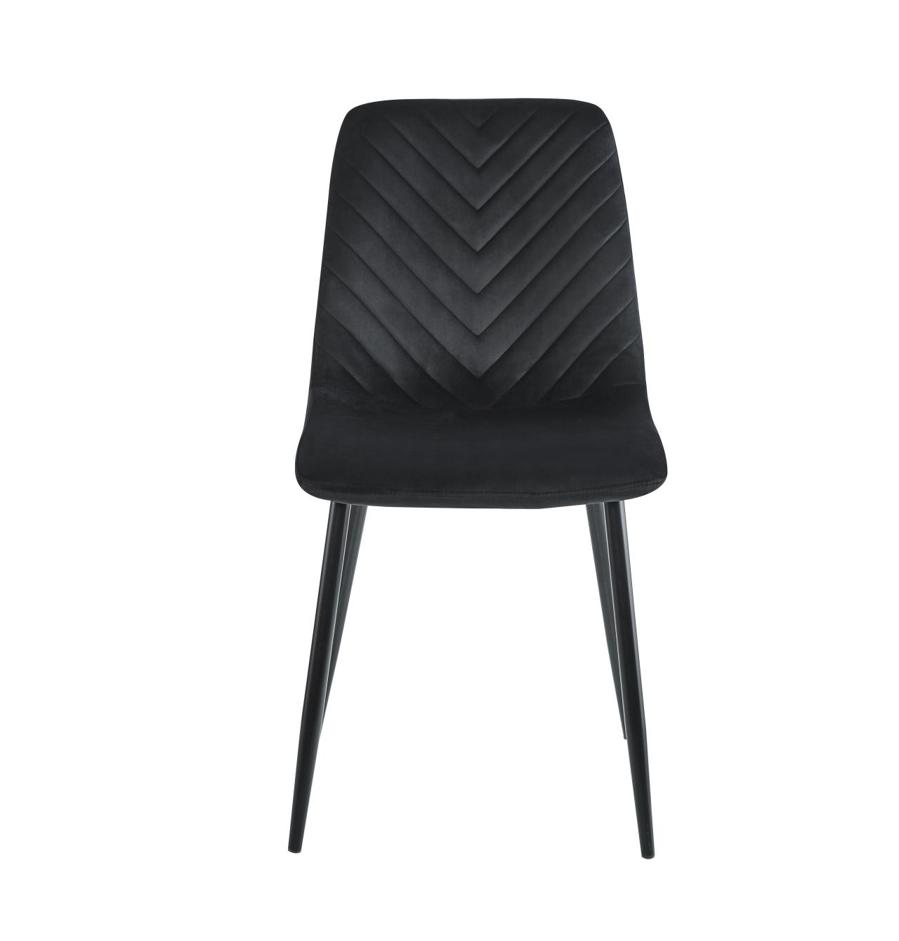 La chaise Sevilla en velours noir est un incontournable du mobilier moderne. Son revêtement profond et son motif chevron délicatement sculpté lui confèrent un caractère noble et raffiné, parfait pour sublimer tout espace de vie.