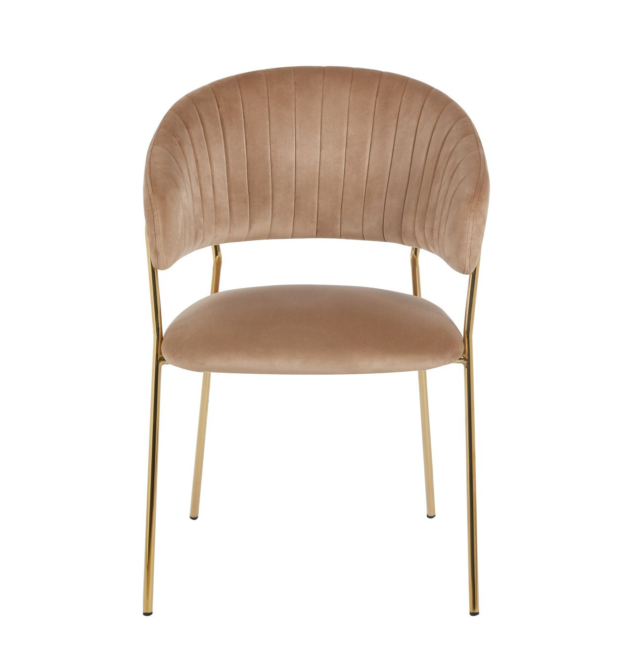 Chaise Alice en velours cappuccino – Élégance dorée et confort velouté