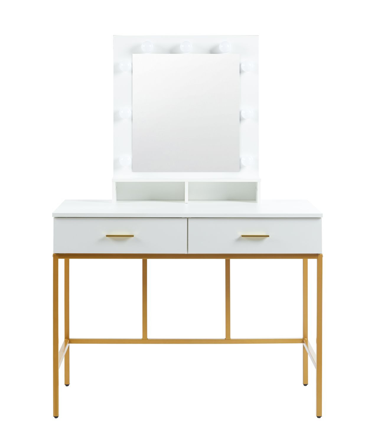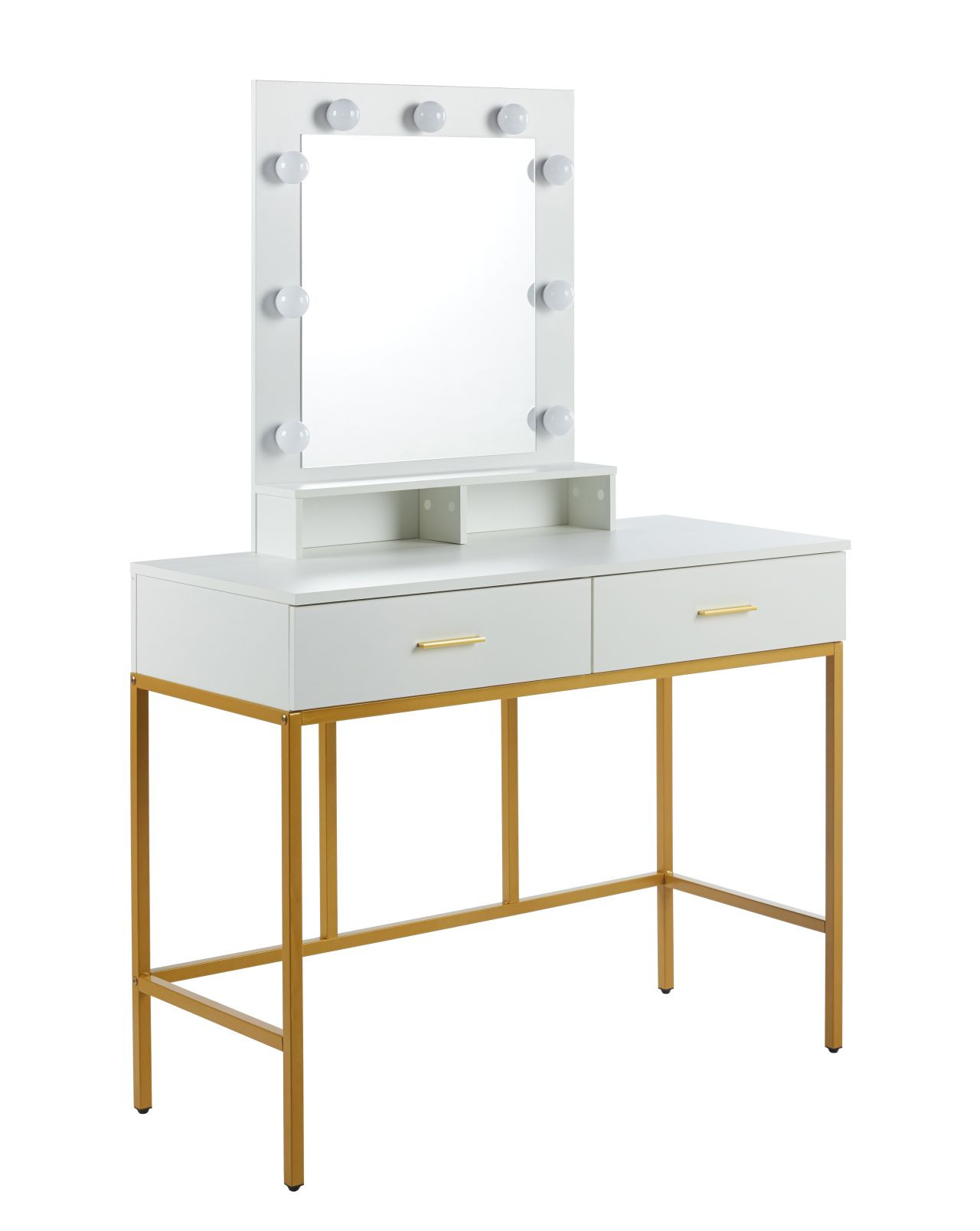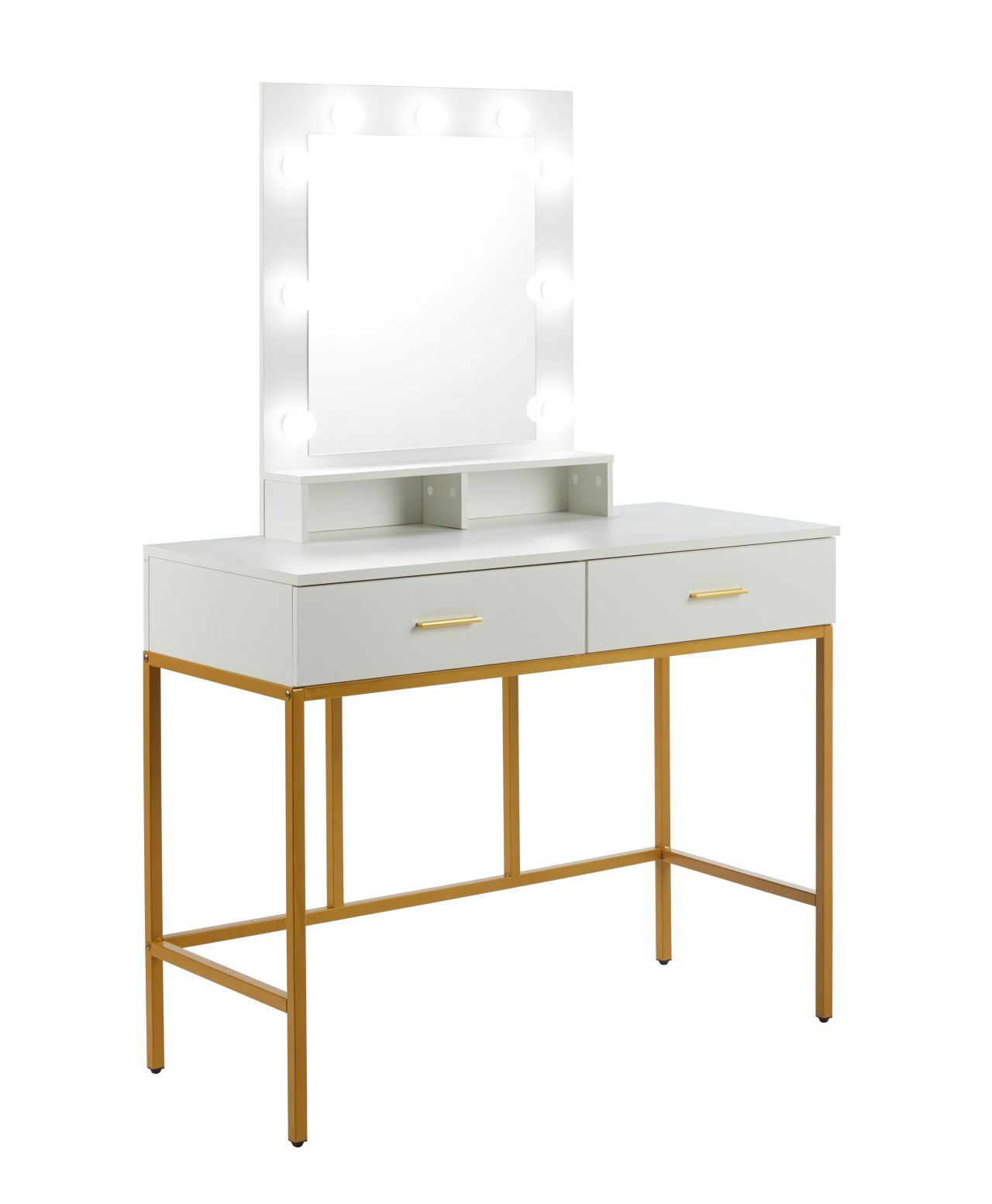 Coiffeuse LED Blanche & Dorée – Élégance Glamour & Design Hollywood