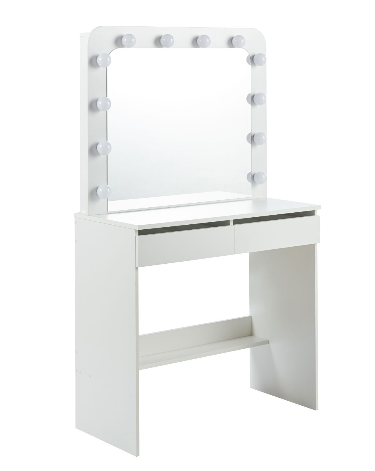 La coiffeuse LED blanche Golddeco associe design épuré et confort d’utilisation. Dotée d’un grand miroir lumineux à ampoules LED et de deux tiroirs, elle est idéale pour un espace beauté moderne, élégant et bien organisé.
