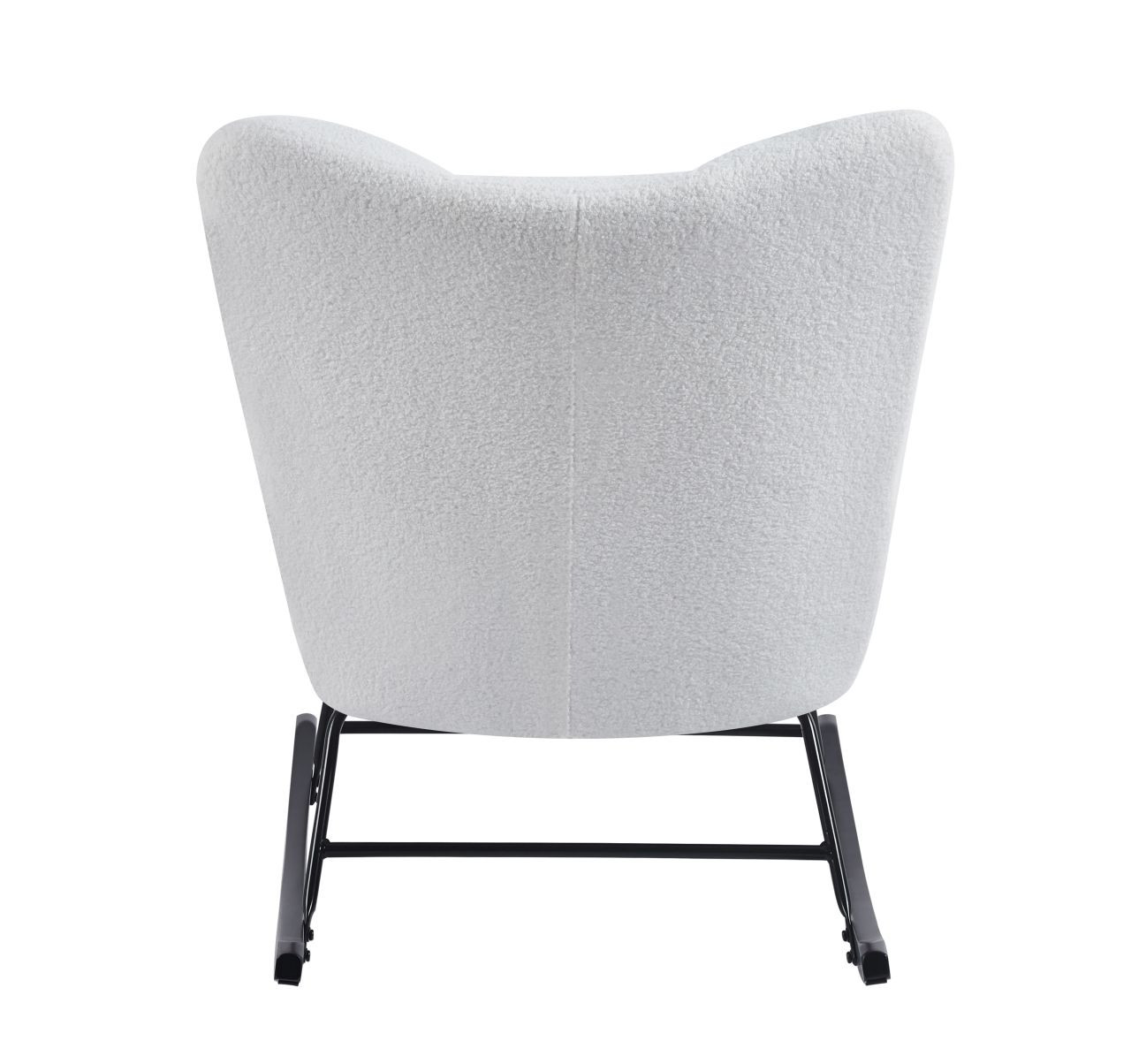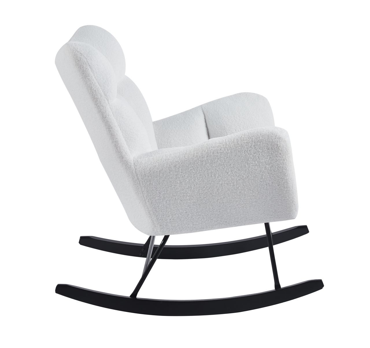 Le fauteuil à bascule COCOON en tissu bouclette blanc allie confort et élégance nordique. Sa texture douce et son mouvement apaisant créent une atmosphère cocooning dans votre salon ou votre chambre.
