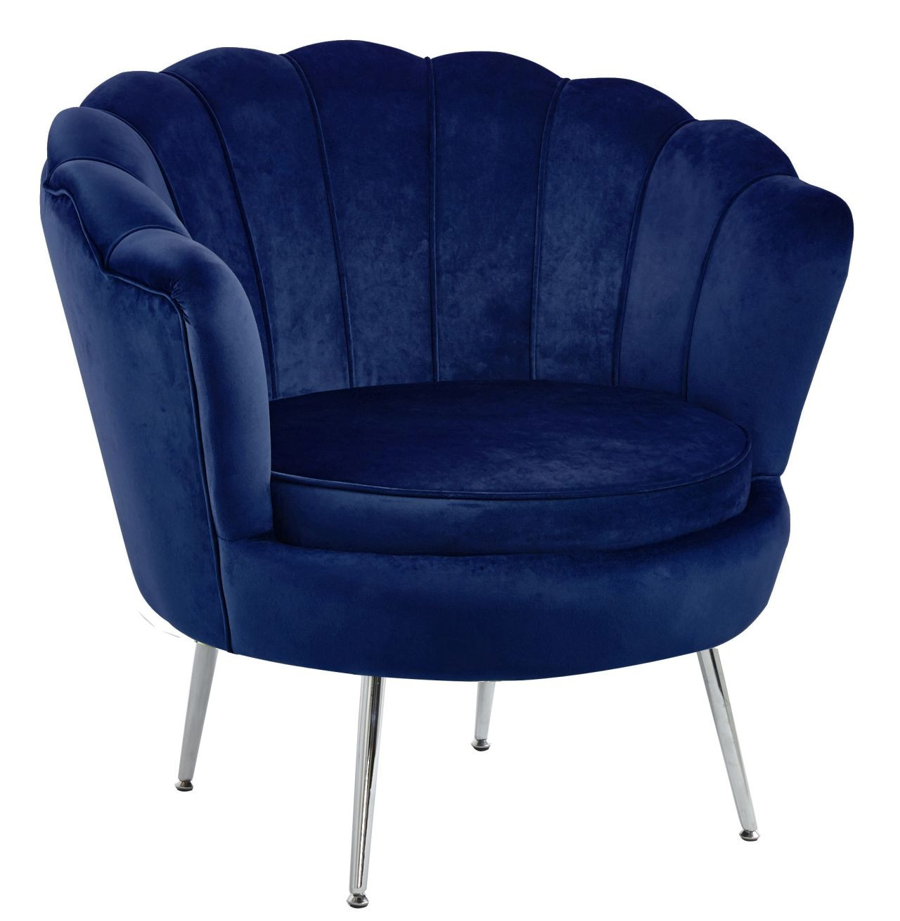 Fauteuil Coquillage en velours bleu nuit – Pieds chromés