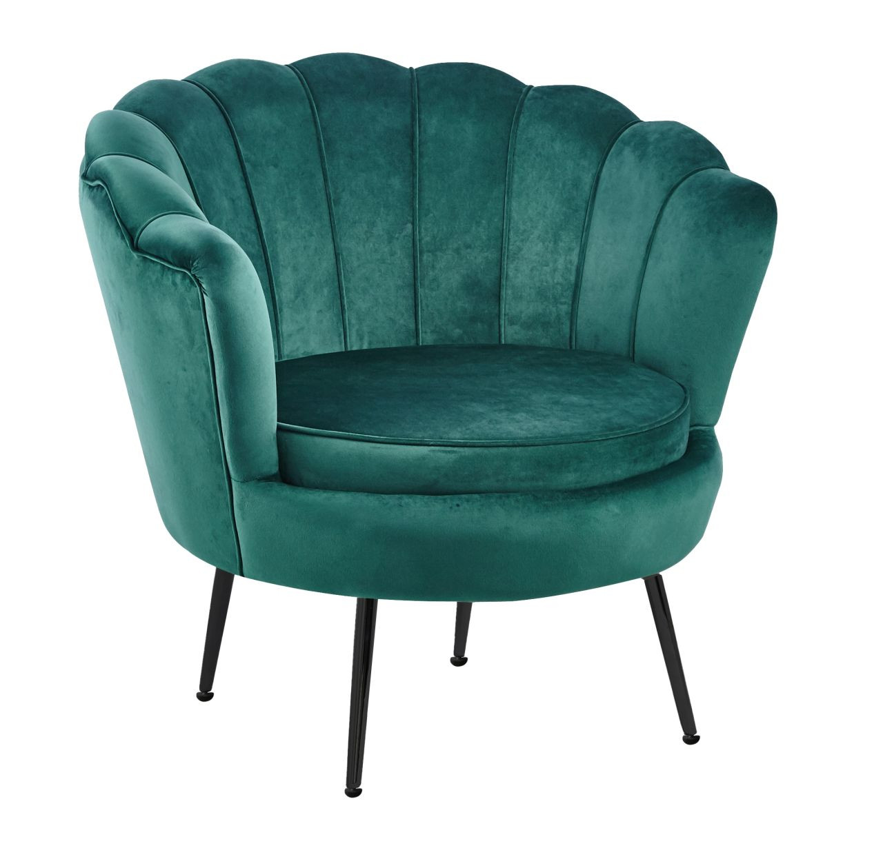 Fauteuil Coquillage en velours vert émeraude – Pieds noirs