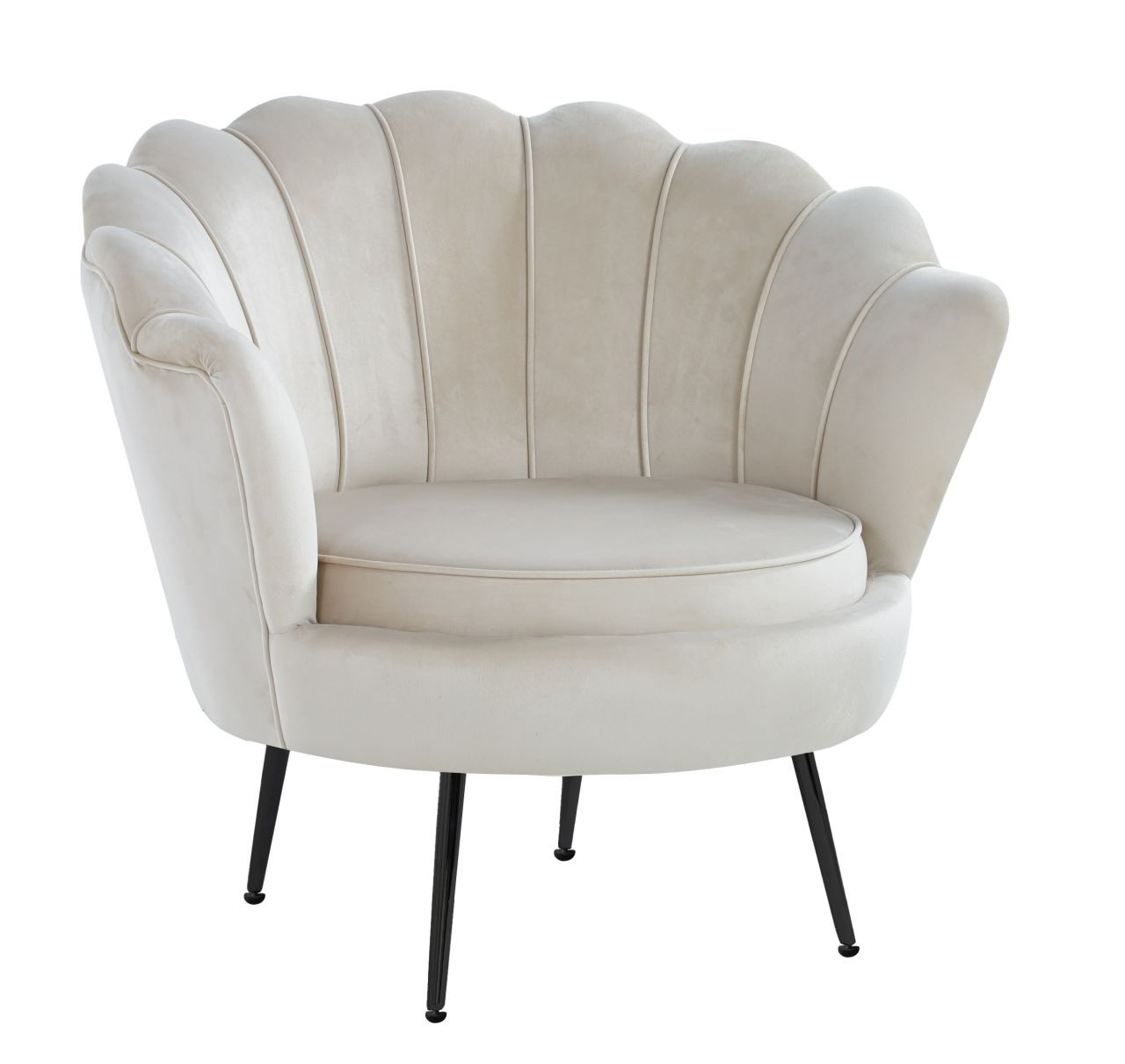 Fauteuil Coquillage en velours beige – Pieds noirs