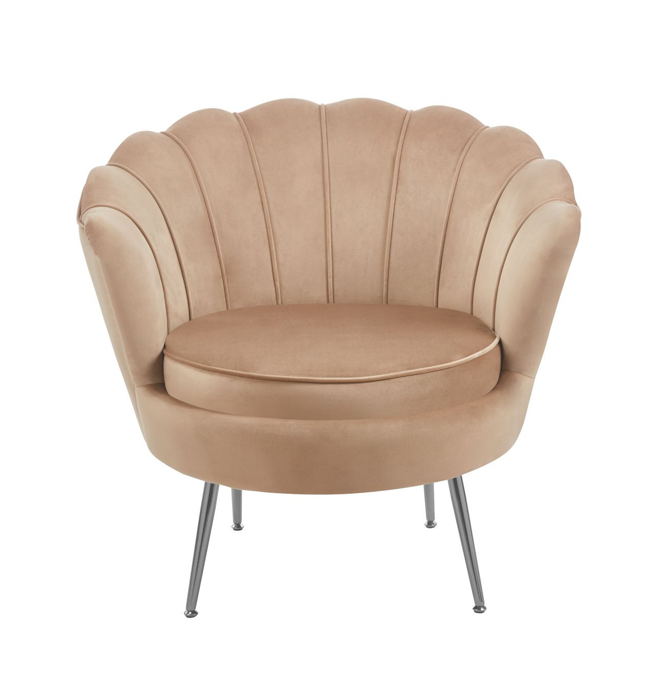 Fauteuil Coquillage en velours marron cappuccino – Pieds argentés