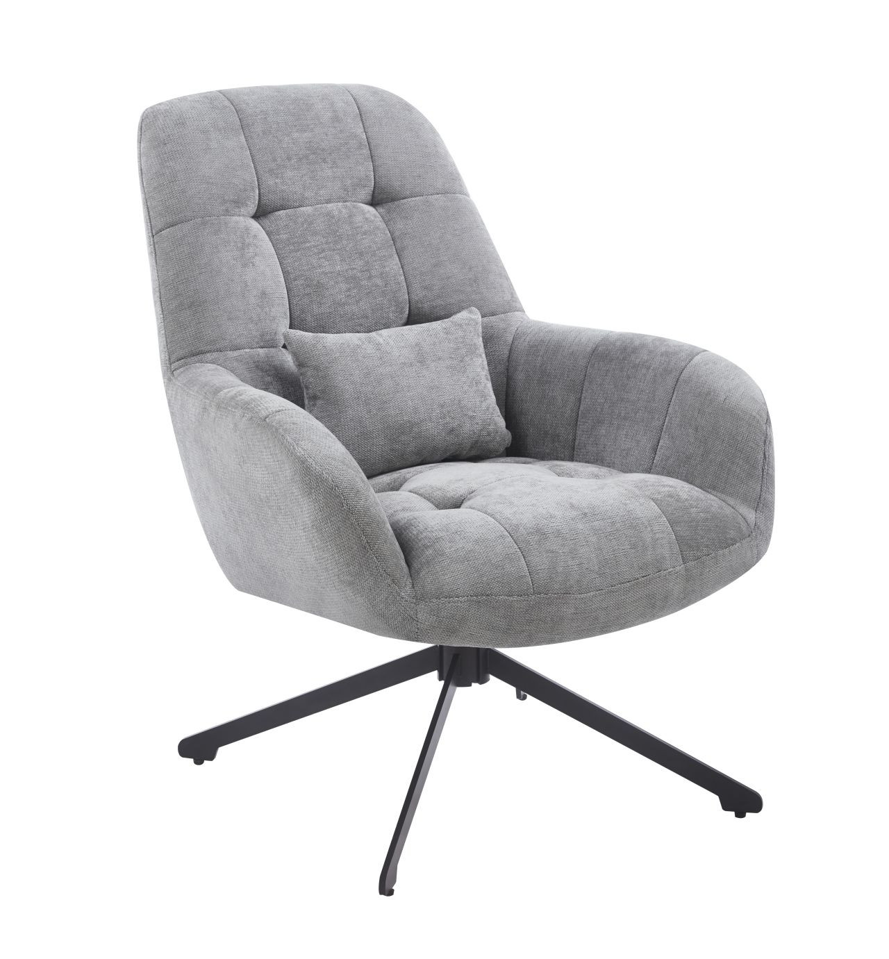 Sa base métallique thermolaquée assure une rotation fluide et stable, idéale pour changer d’orientation en un geste. Le coussin assorti complète le confort d’une assise généreusement rembourrée et ergonomique.