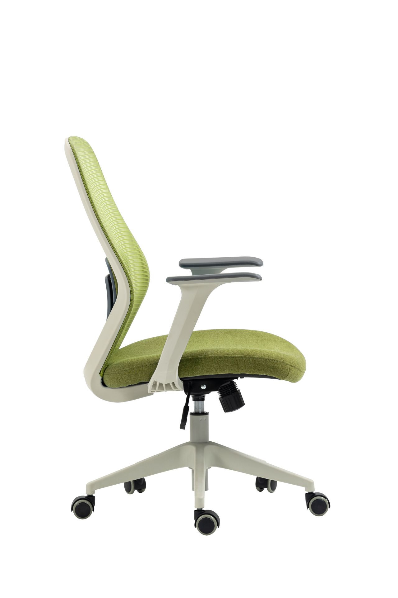 La chaise pivotante VERDE conjugue confort et esthétique naturelle. Son dossier en maille verte respirante et son assise moelleuse créent un espace de travail lumineux, frais et stimulant.