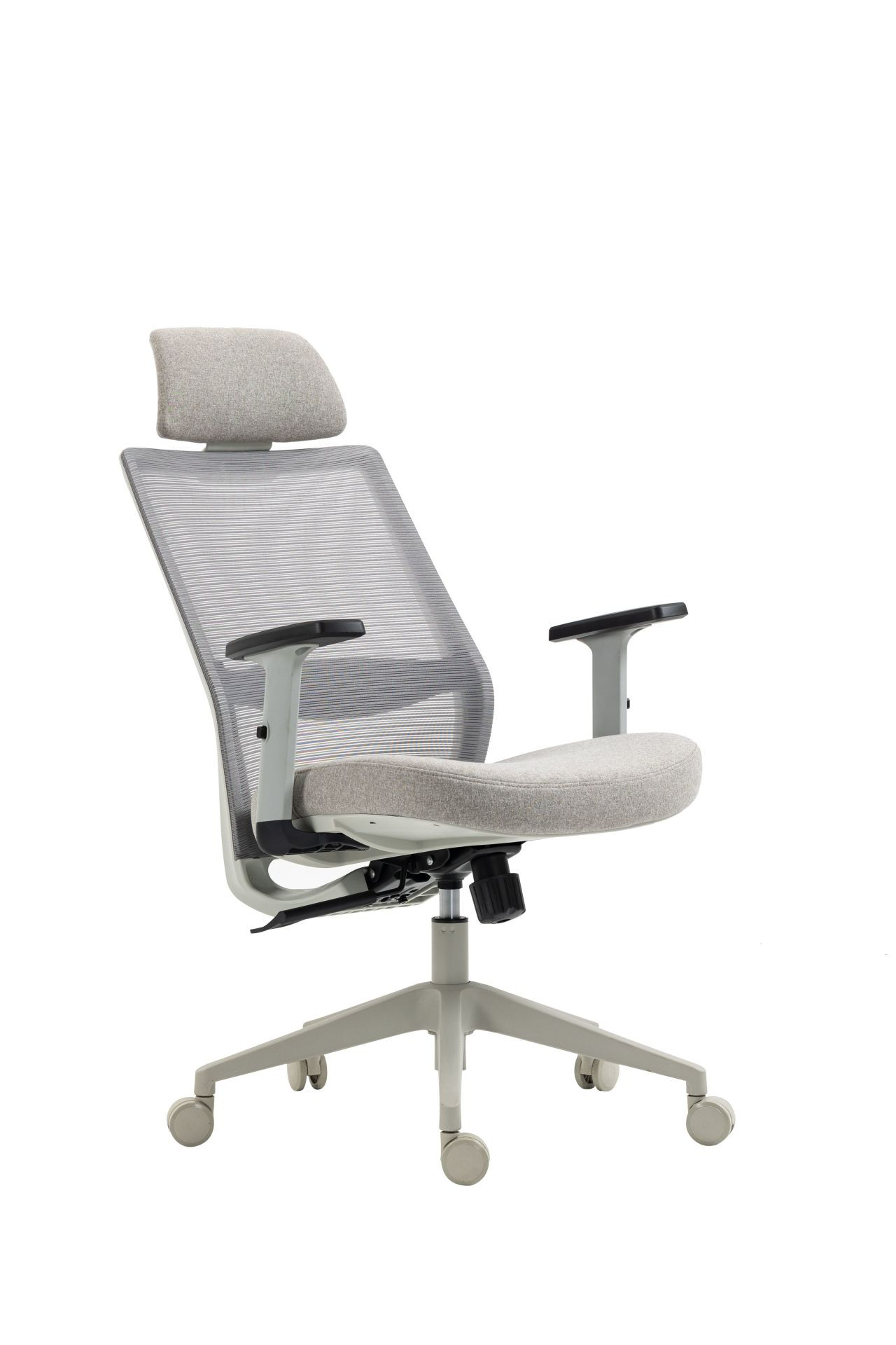 Le fauteuil ERGOMAX Gris clair combine un design moderne à une ergonomie de haut niveau. Son dossier en maille respirante et son assise en tissu offrent un confort durable pour une posture parfaite au quotidien.