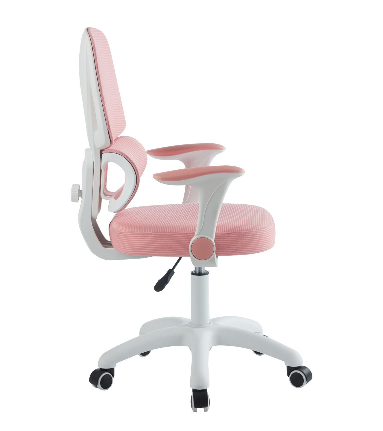 Le fauteuil de bureau ERGOFLEX en tissu rose et structure blanche est conçu pour allier confort et style. Son dossier ergonomique et sa maille respirante offrent une assise agréable tout au long de la journée, que ce soit pour le travail, les études ou les loisirs créatifs.
