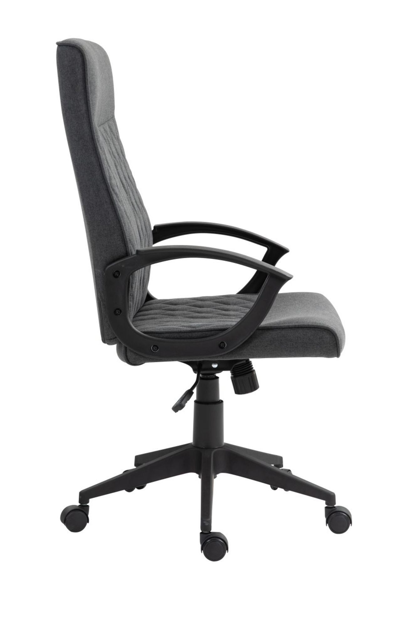 Le fauteuil pivotant DEXTER combine confort ergonomique et design moderne. Son tissu gris foncé matelassé et sa structure noire apportent une touche élégante et professionnelle à tout espace de travail.