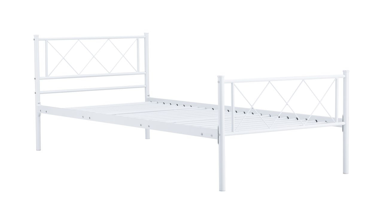 Le lit en métal 90x200 blanc Golddeco séduit par son design croisé élégant et sa solidité. Une structure thermolaquée résistante, idéale pour un couchage durable au style moderne.
