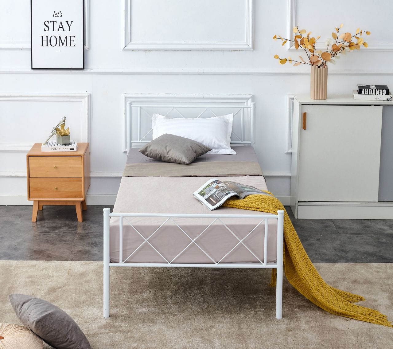 Associez ce lit en métal blanc à du linge de lit coloré ou pastel pour une atmosphère douce et accueillante. Il s’accorde parfaitement avec des meubles en bois clair ou des accessoires dorés pour une touche chic.
