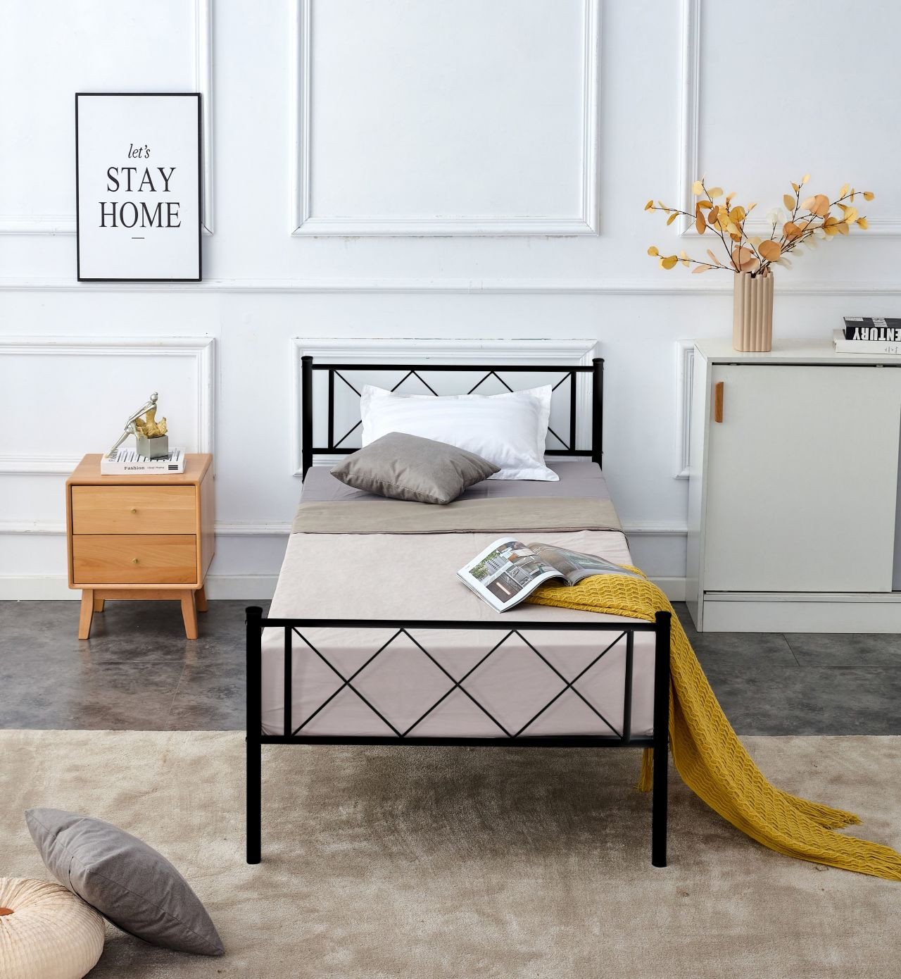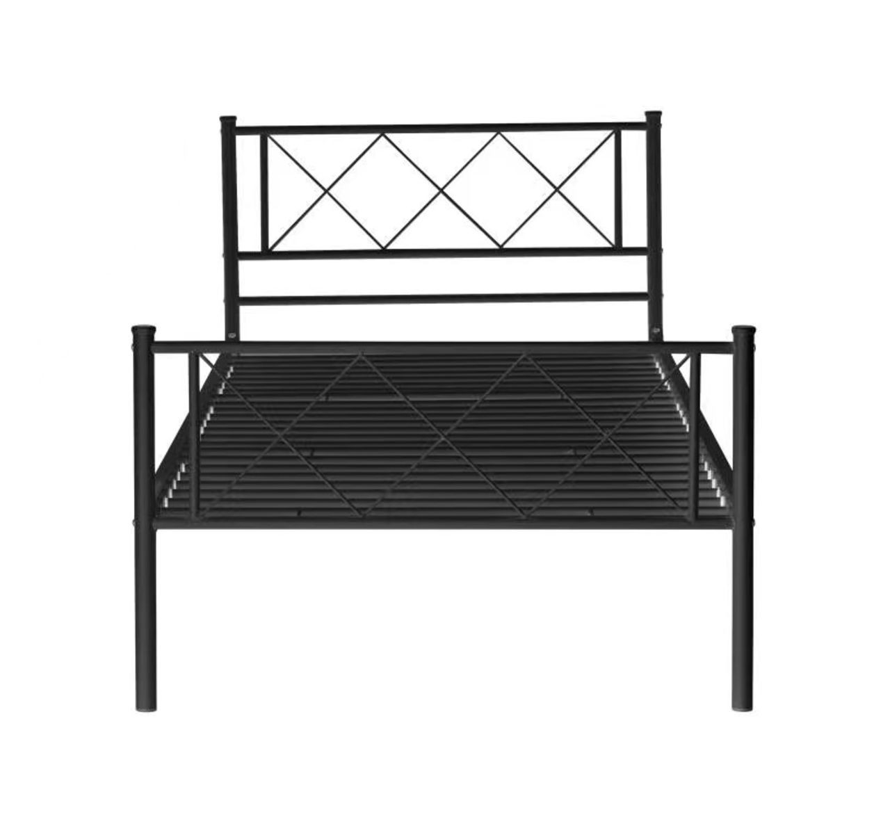 Le lit en métal 90x200 noir Golddeco séduit par son style croisé élégant et sa robustesse.