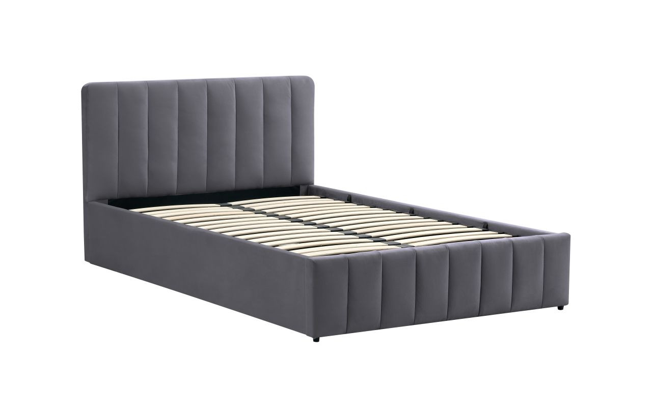 Le lit rembourré Golddeco 120x200 en velours gris offre un savant équilibre entre confort, design et fonctionnalité. Avec sa tête de lit capitonnée à bandes verticales et son revêtement en velours soyeux, il transforme la chambre en un espace de détente chic et harmonieux.