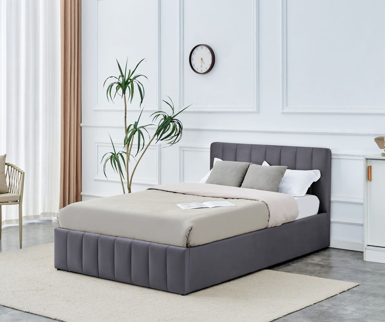 Lit rembourré 120x200 en velours gris avec coffre – Élégance et praticité Golddeco