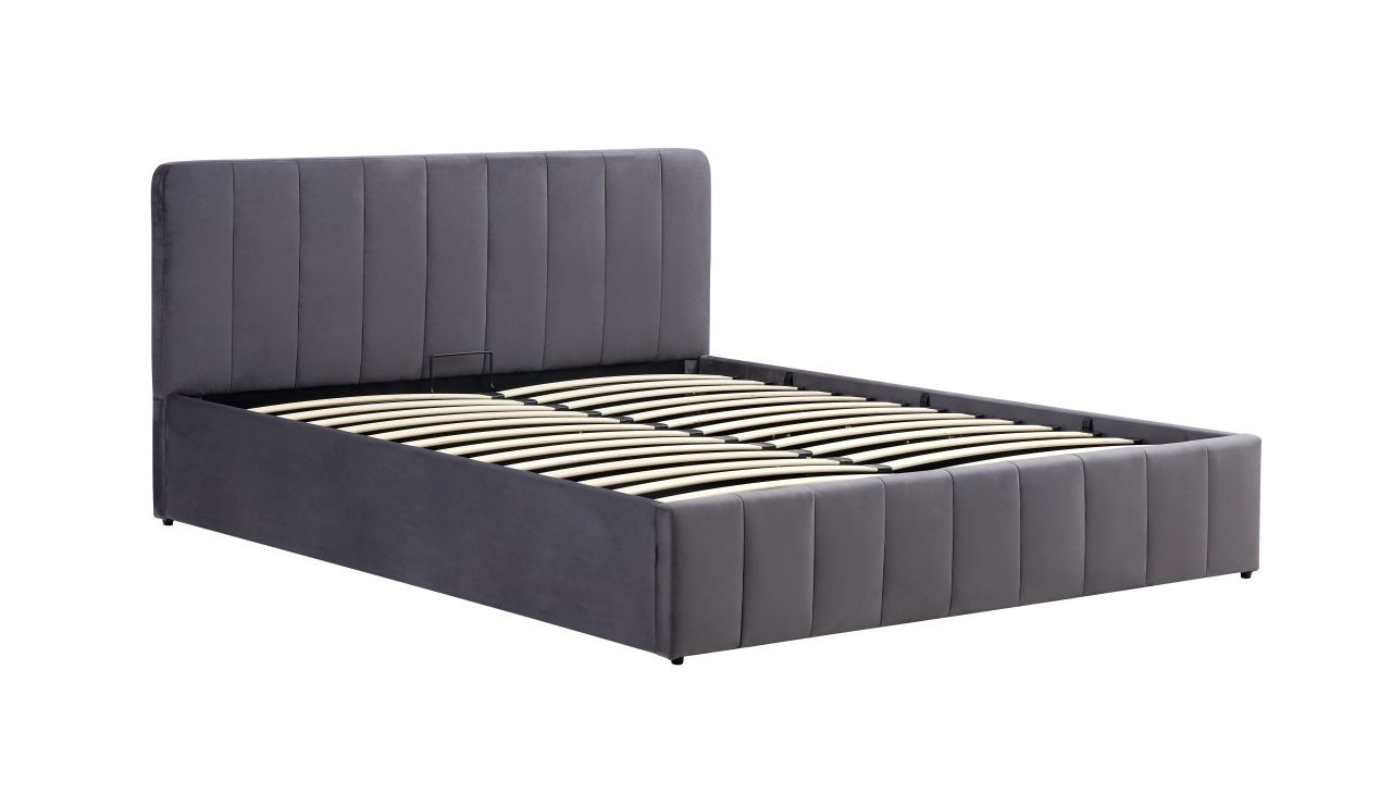 Lit rembourré 160x200 en velours gris avec coffre – Élégance et rangement intégré