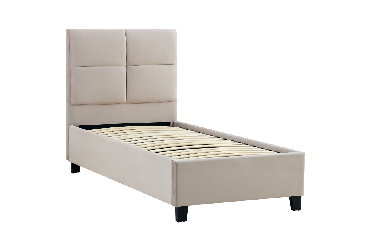 Le lit capitonné Golddeco 90x200 en velours beige associe élégance et confort absolu.