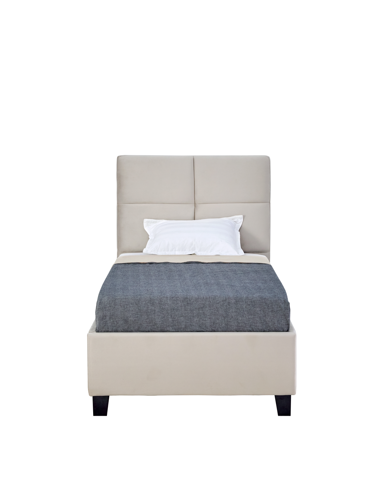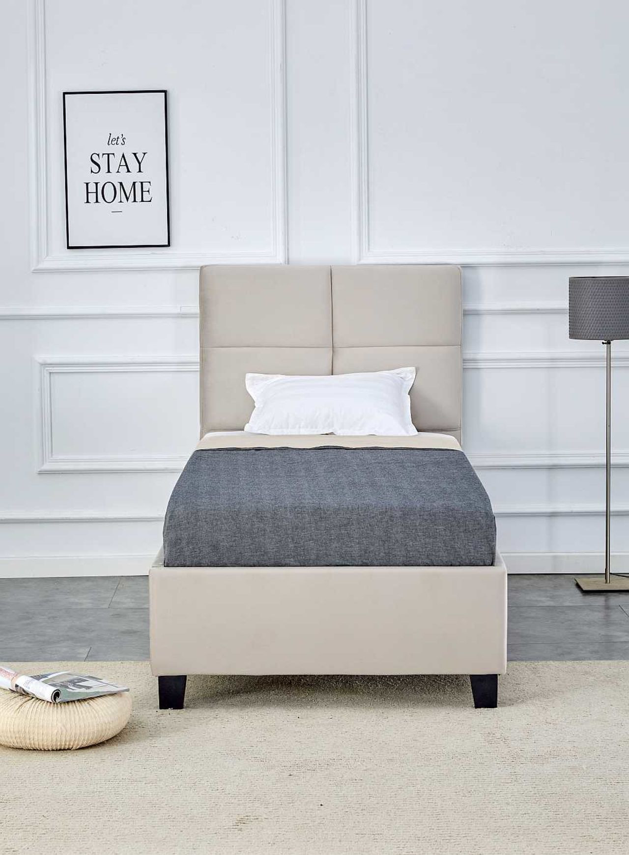 Lit capitonné 90x200 en velours beige – Élégance raffinée et confort intemporel