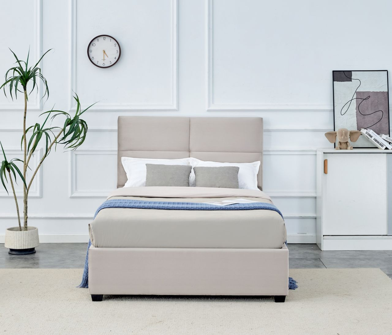 - Revêtement en velours beige – doux, lumineux et agréable au toucher