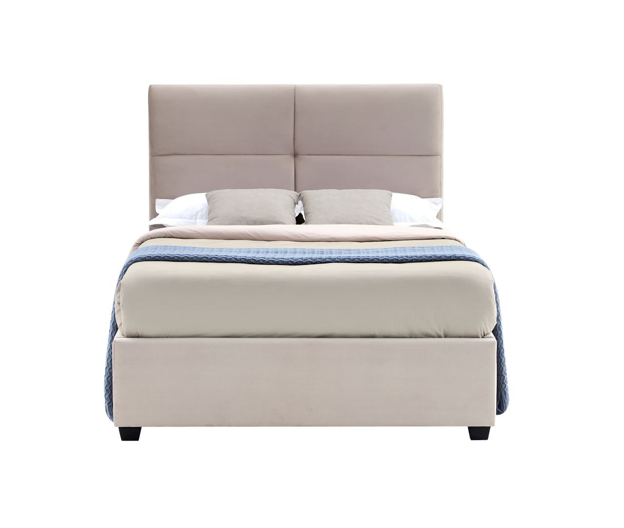 Les lits Golddeco se distinguent par leur confort, leur élégance et leur praticité. Ce modèle capitonné en velours beige transforme votre chambre en un espace chaleureux et raffiné, tout en offrant un rangement discret et astucieux.