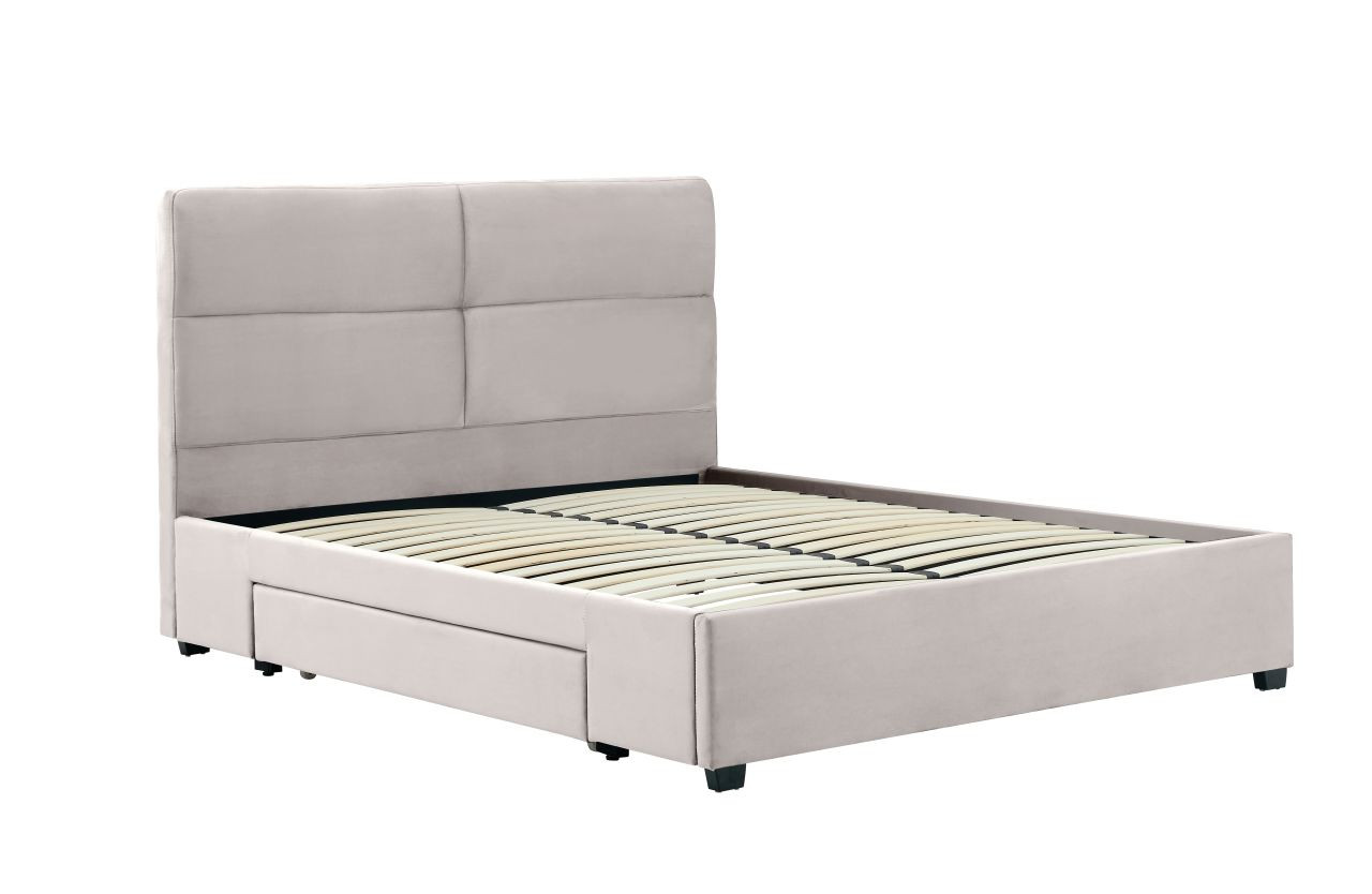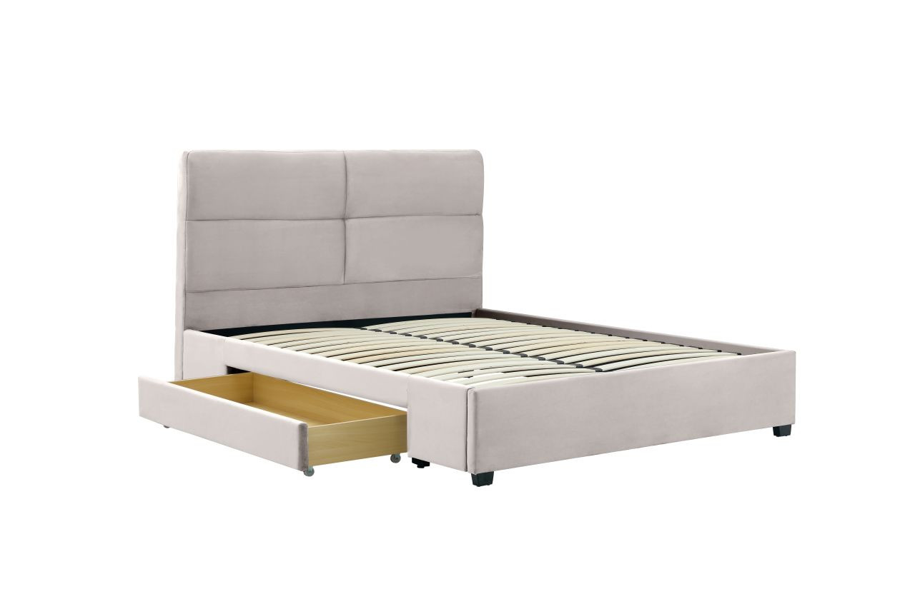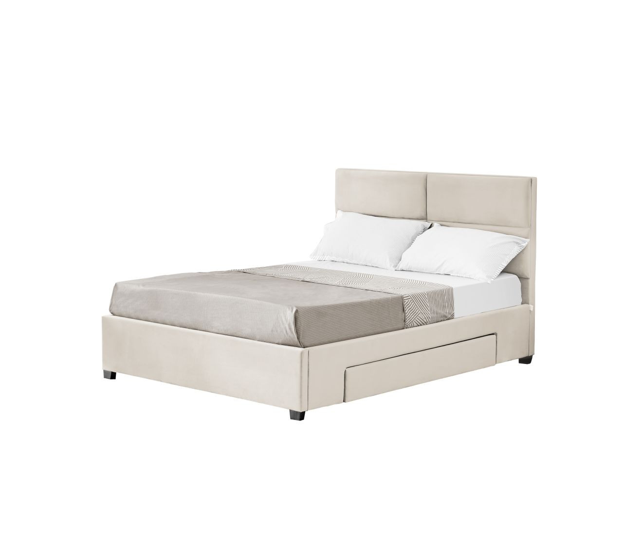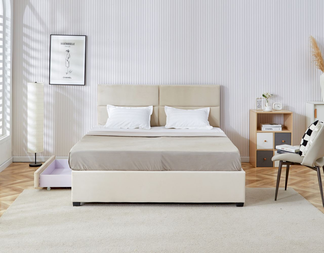 Chaque lit Golddeco est conçu pour offrir un parfait équilibre entre esthétisme et confort. Ce modèle en velours beige transforme votre chambre en un espace chaleureux et harmonieux, tout en vous offrant un rangement discret et fonctionnel.