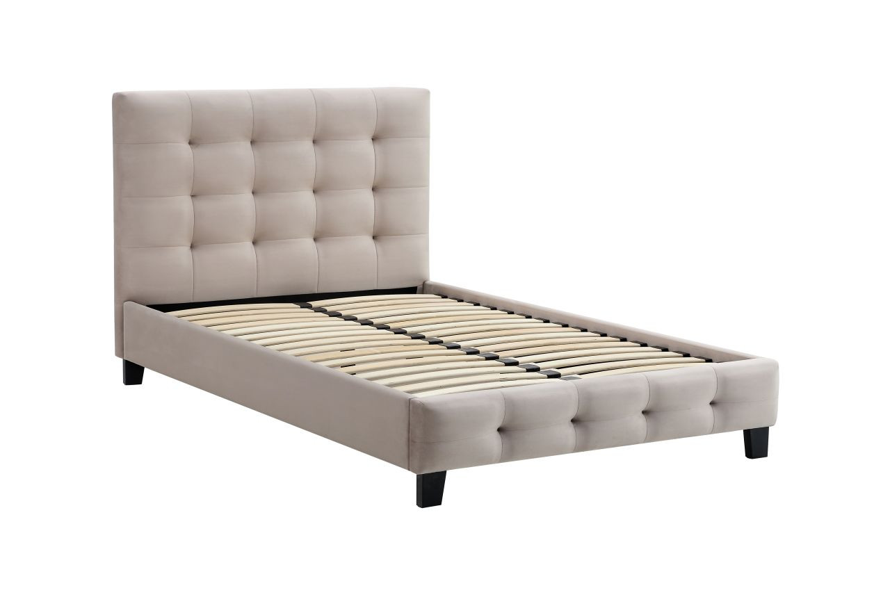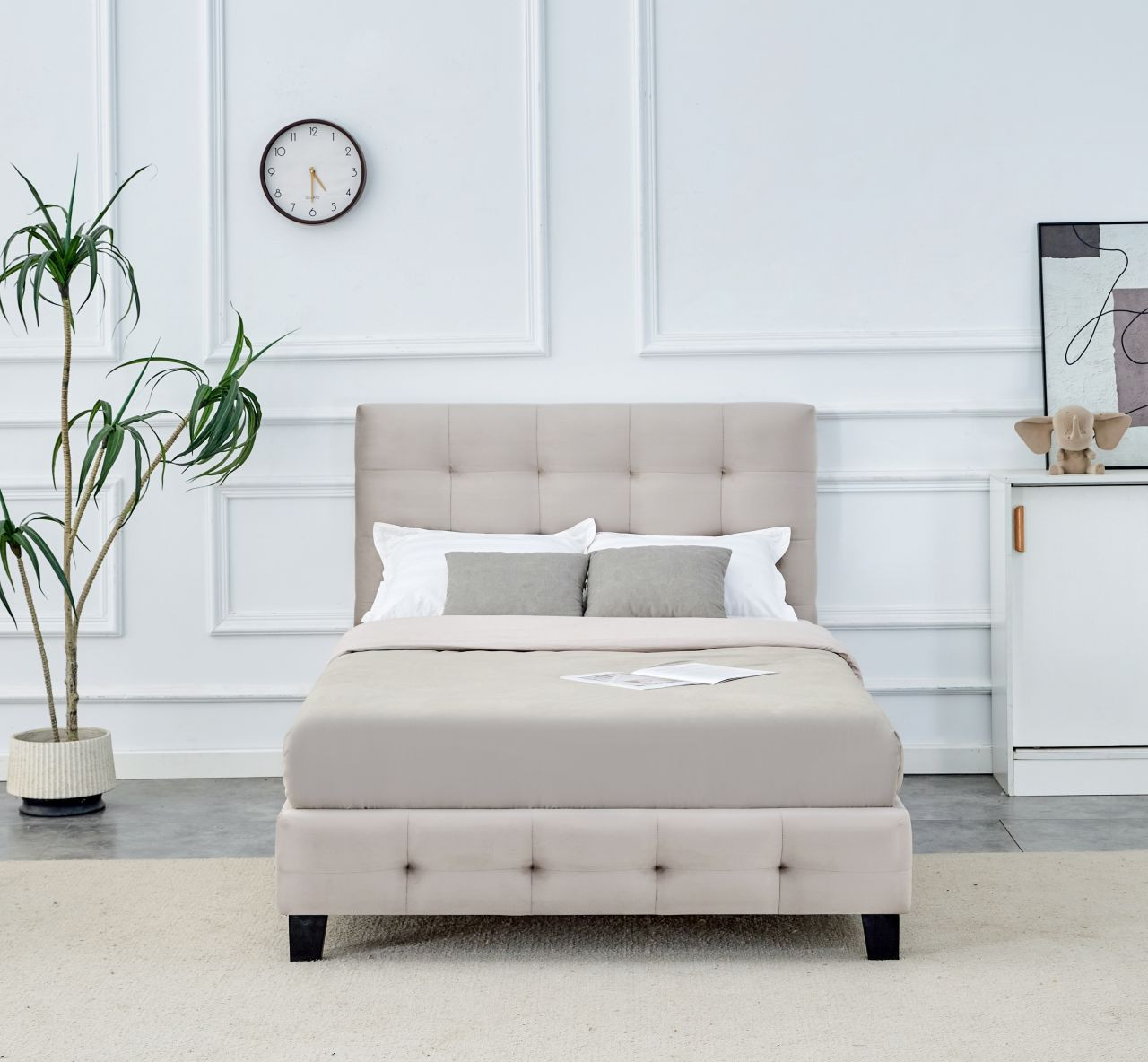 Lit capitonné 120x200 en velours beige – Élégance compacte signée Golddeco